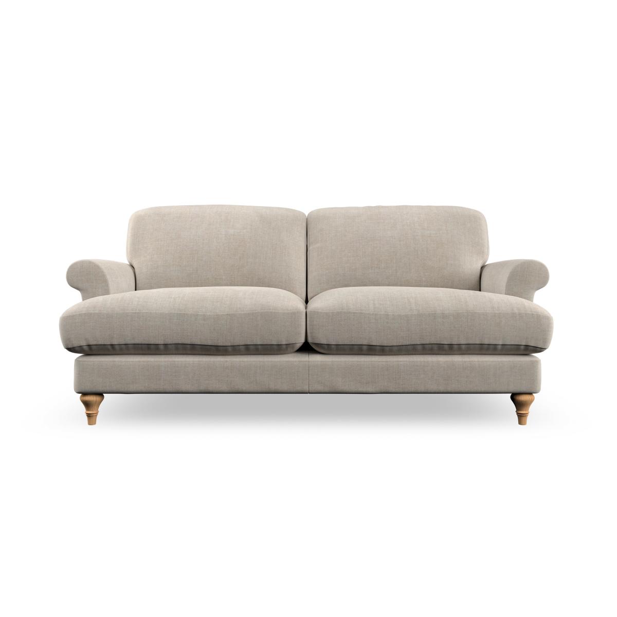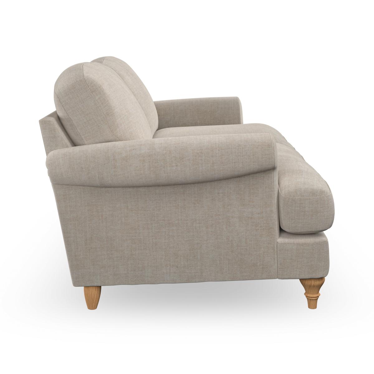 I’m a fan of the Evie two-seater for its rolled arms, turned timber legs and softly tailored linen-look upholstery - it brings a relaxed yet smart feel to a room. It sits equally well in contemporary Scandi schemes or a more traditional country style; just swap your cushions and throws to suit your palette. For a cosy corner, float it off the wall on a patterned rug, add a slim side table and an arched floor lamp. Keep cushions in different textures or subtle print to add interest without overwhelming the soft neutral tone.
