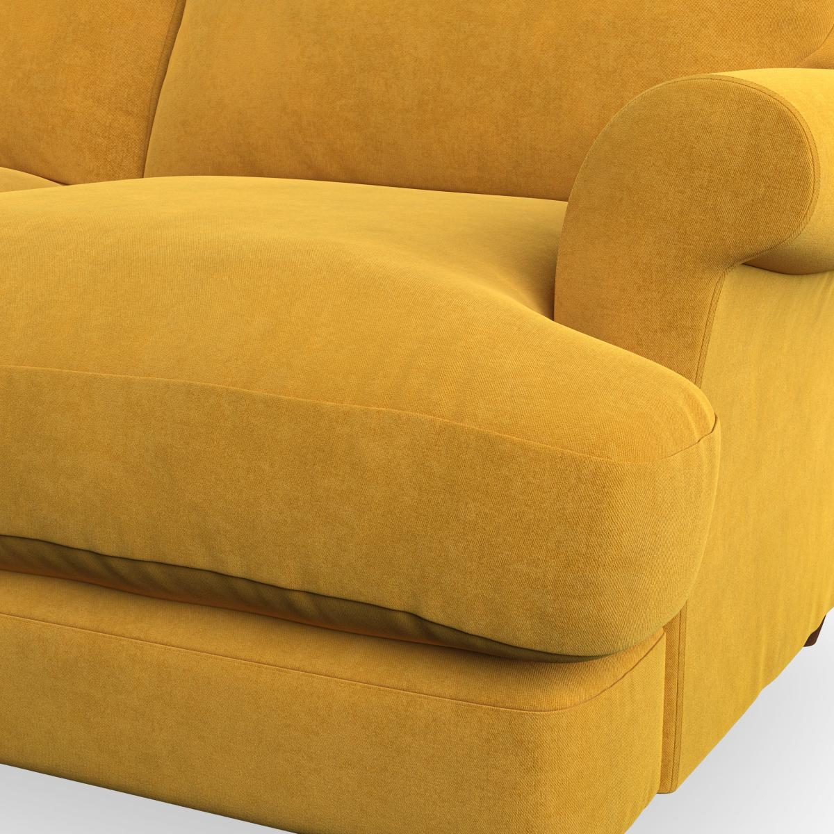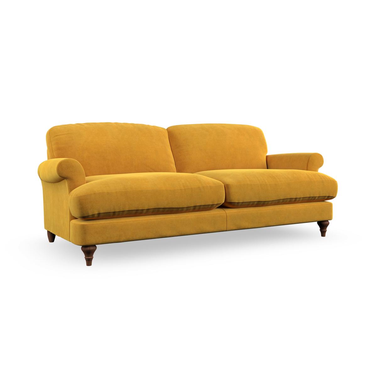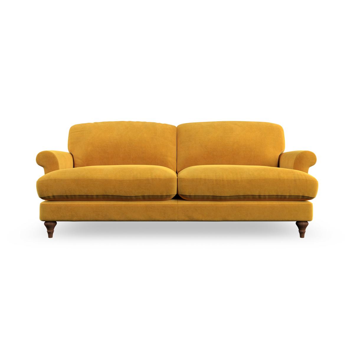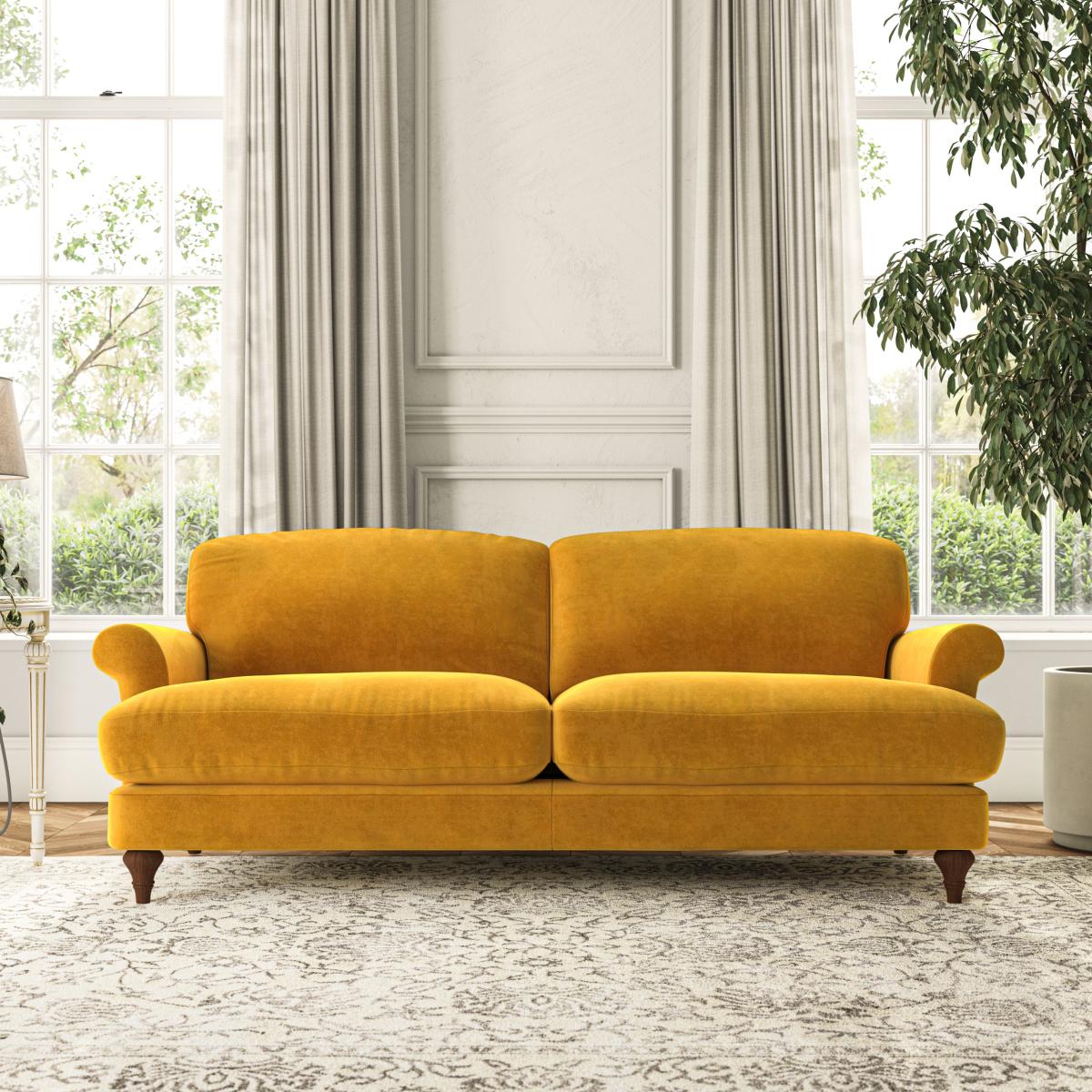 I love the Evie in this mustard hue - it adds a bold yet versatile pop of colour that works well in both traditional and contemporary interiors. This sofa's clean lines and generous size make it a practical choice for larger family rooms or open-plan spaces, offering plenty of seating without overwhelming the room. To style it effectively, consider pairing with soft neutrals for a more understated look or mixing with patterned cushions and warm-toned accessories to create a cosy, inviting atmosphere. Its timeless silhouette also makes it easy to dress up or down, whether you're aiming for a classic, eclectic, or modern aesthetic.