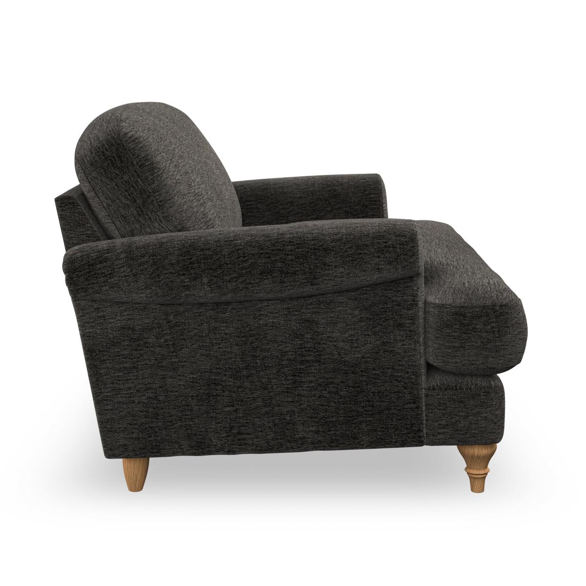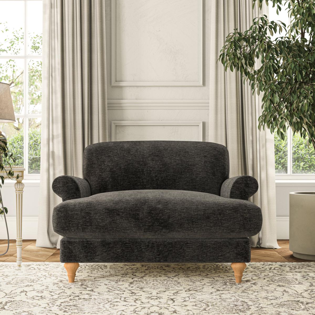 * Elegant, classic design* Scroll Arms* Lugged seat cushion* Serpentine seat springs* Choose your orientation, support, fabric and leg colour The Evie Snuggle Chair is the perfect cosy addition to any room, offering a compact yet elegant design that’s ideal for relaxing. With slender scroll arms and a snug lugged seat cushion, this chair provides both style and comfort in a smaller package. The fibre-filled back cushion delivers soft support, making it an inviting spot for one or a cosy retreat for two. Customise it to suit your space with your choice of fabric type, colour, cushion filling, and leg finish.