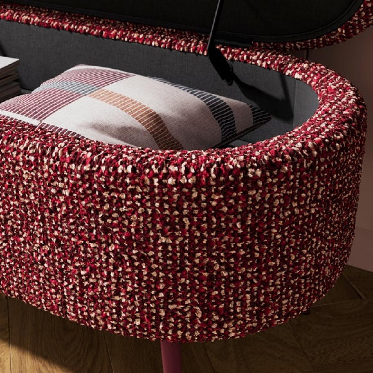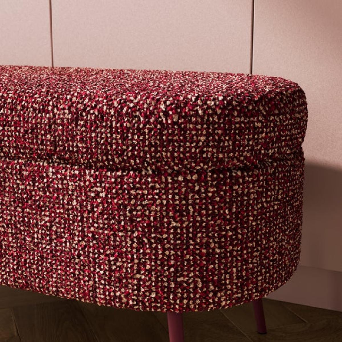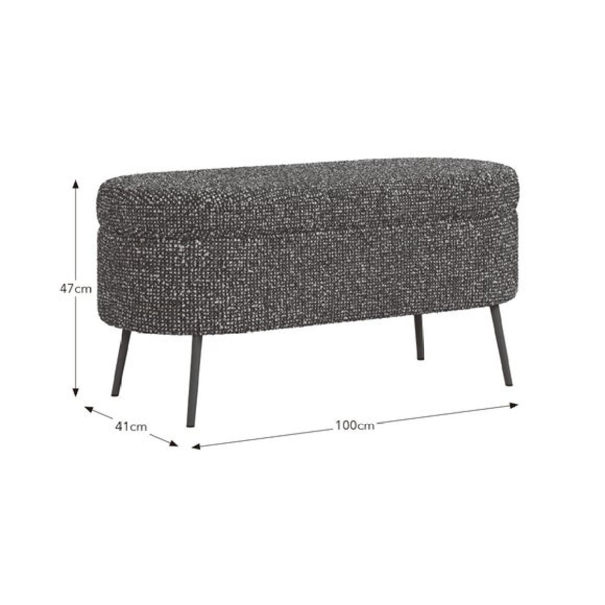 Dunelm Exclusive - Designed and Developed by Dunelm * Textured sherpa fabric * Convenient storage * Painted steel legs * 2-seater space * Oval shape Whether you're winding down after a busy day or hosting friends, the Evie Storage Ottoman in textured sherpa fabric brings cosy charm and practical design to your living space. Its soft, curved oval silhouette is wrapped in plush sherpa, offering a tactile and inviting feel that’s perfect for relaxation. Beneath its snug exterior lies generous hidden storage, ideal for keeping everyday essentials neatly tucked away. Designed for comfort and style, the ottoman features deep cushioning for a luxurious seating experience, while sleek painted steel legs add a subtle touch of modern elegance.