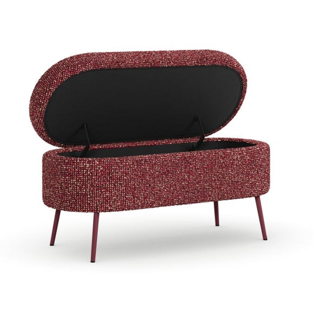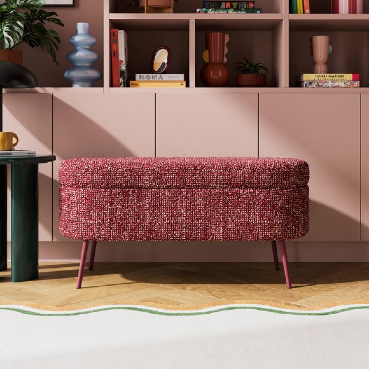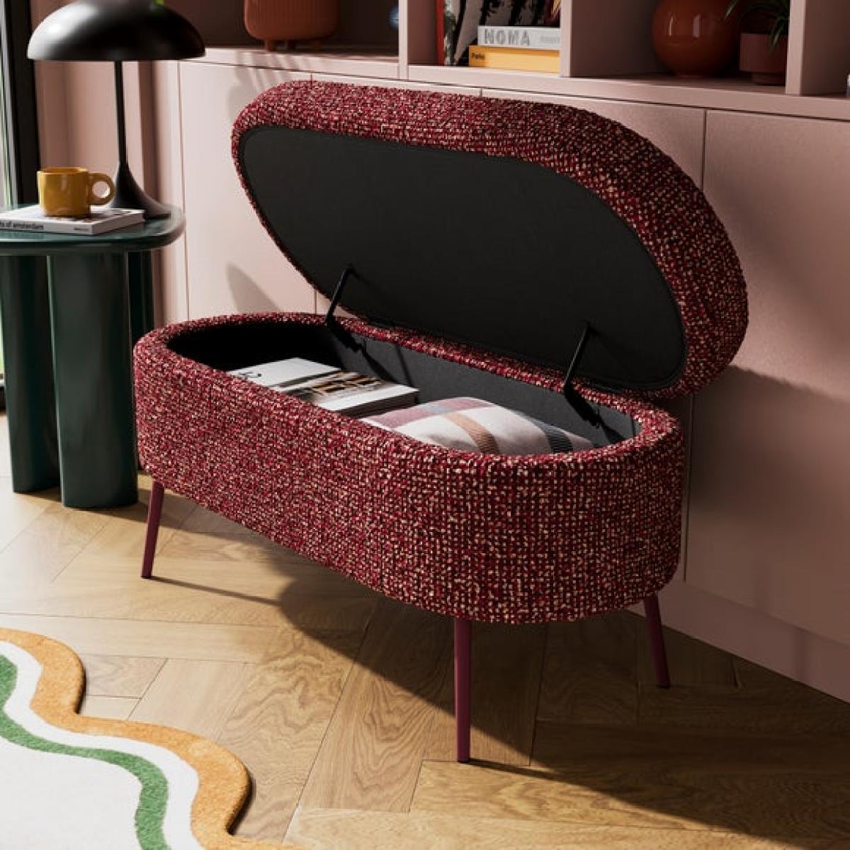 Dunelm Exclusive - Designed and Developed by Dunelm * Textured sherpa fabric * Convenient storage * Painted steel legs * 2-seater space * Oval shape Whether you're winding down after a busy day or hosting friends, the Evie Storage Ottoman in textured sherpa fabric brings cosy charm and practical design to your living space. Its soft, curved oval silhouette is wrapped in plush sherpa, offering a tactile and inviting feel that’s perfect for relaxation. Beneath its snug exterior lies generous hidden storage, ideal for keeping everyday essentials neatly tucked away. Designed for comfort and style, the ottoman features deep cushioning for a luxurious seating experience, while sleek painted steel legs add a subtle touch of modern elegance.