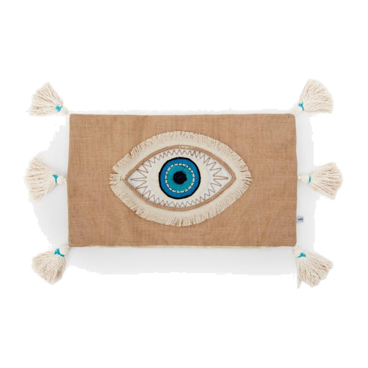 I love the Evil Eye cushion cover for its bold yet versatile design, making it a great statement piece without overwhelming a space. Its earthy brown tone ensures it fits well in both neutral and layered colour schemes, especially those with boho, eclectic, or ethnic influences. The eye motif adds a touch of cultural intrigue and a hint of protection symbolism, perfect for adding personality to sofas or armchairs. For styling tips, pair it with textured throws, vintage-inspired accessories, or natural fibres to create a cosy, layered look. Its tassel detailing also lends itself well to boho or relaxed interiors, while the compact size makes it easy to switch up and refresh a seating arrangement.
