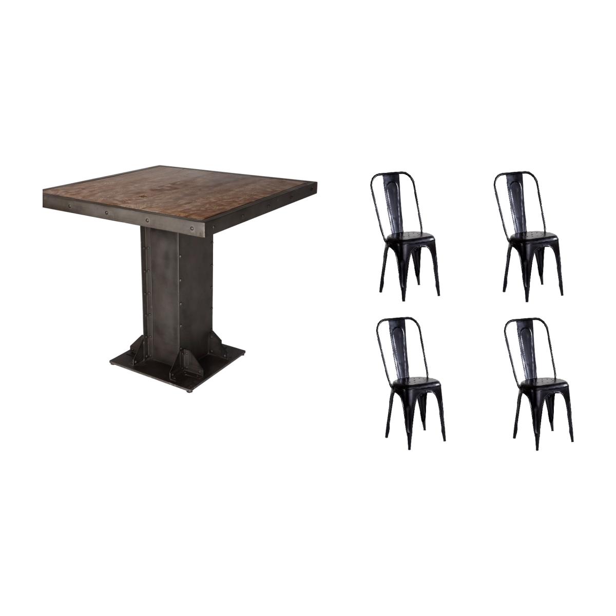 Evil Industrial Square Dining Table Set with 4 Metal Black Chairs - Black