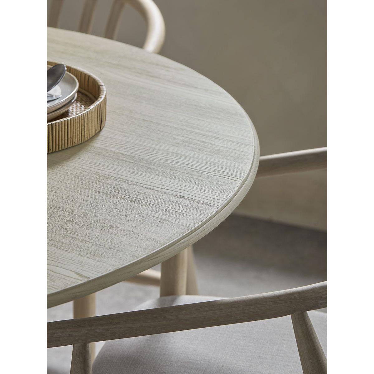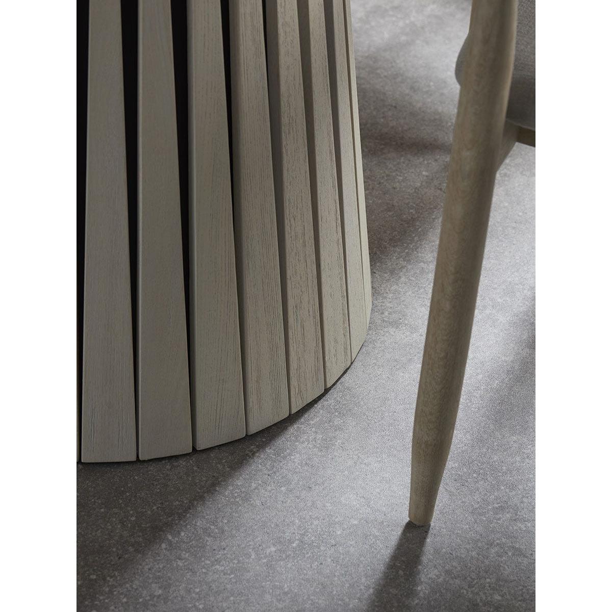 Ideal for adding a touch of neutral impact to a smaller space, our Evora Dining Table features a singular, wide leg, built of geometric triangles to create a focal point in your kitchen or dining space. Handcrafted from a blonde elm, this circular dining table is the perfect addition to our New Neutral trend.