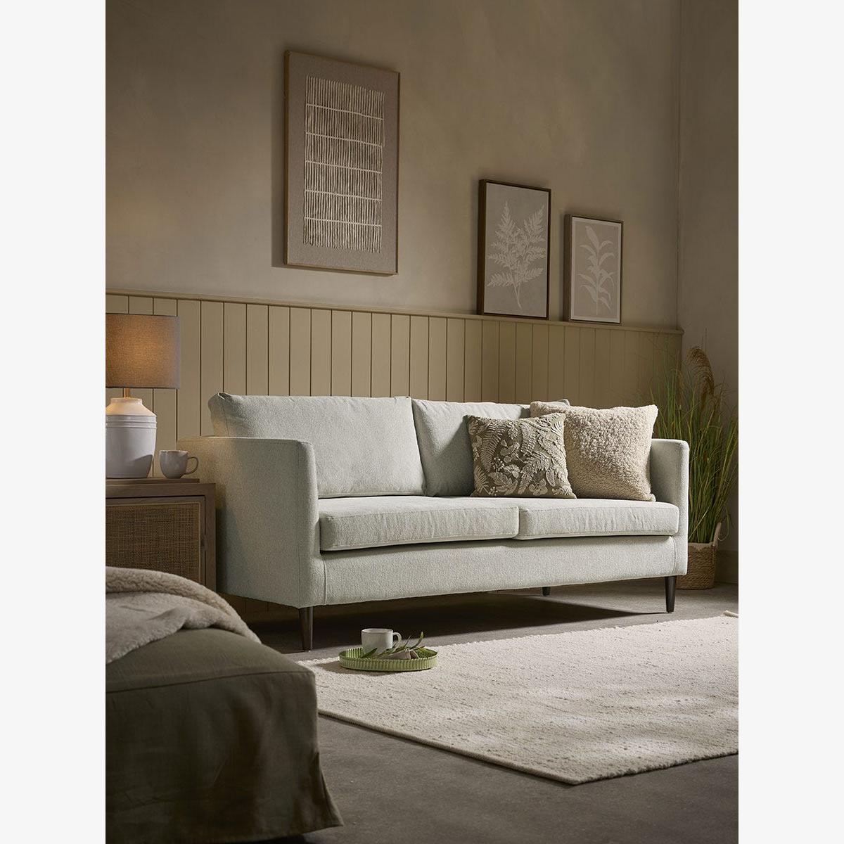 Beautifully understated for a timeless look, elevate your living space with our Evora two-seater sofa. In neutral tones, the soft upholstered seat offers a bounty of comfort, with plush back cushions and deeply padded seating that invites you to sink in and unwind, whilst its simplicity makes it an ideal companion in both contemporary and traditional interiors. Gently tapered legs offer a clean line to this silhouette, and the compact, two-seater size makes it a great choice for smaller spaces - from a cosy reading nook, to a smaller living space. Also available as a three seater sofa.