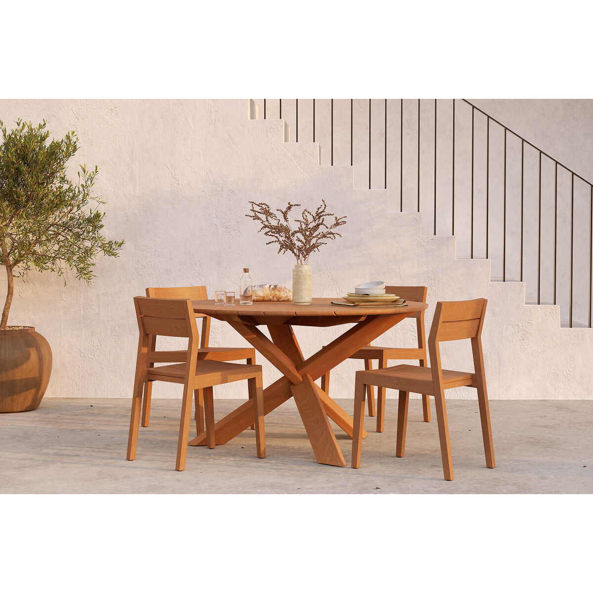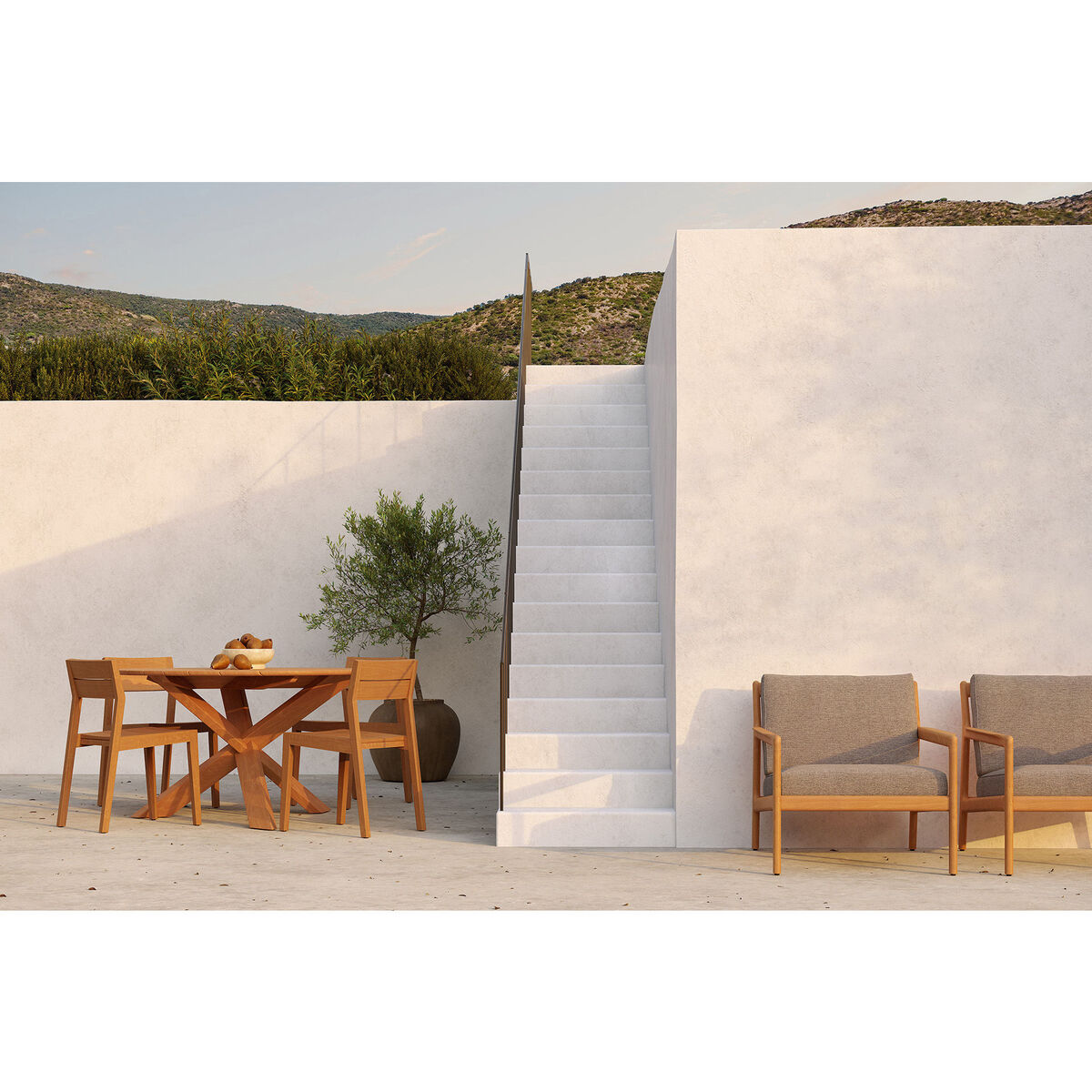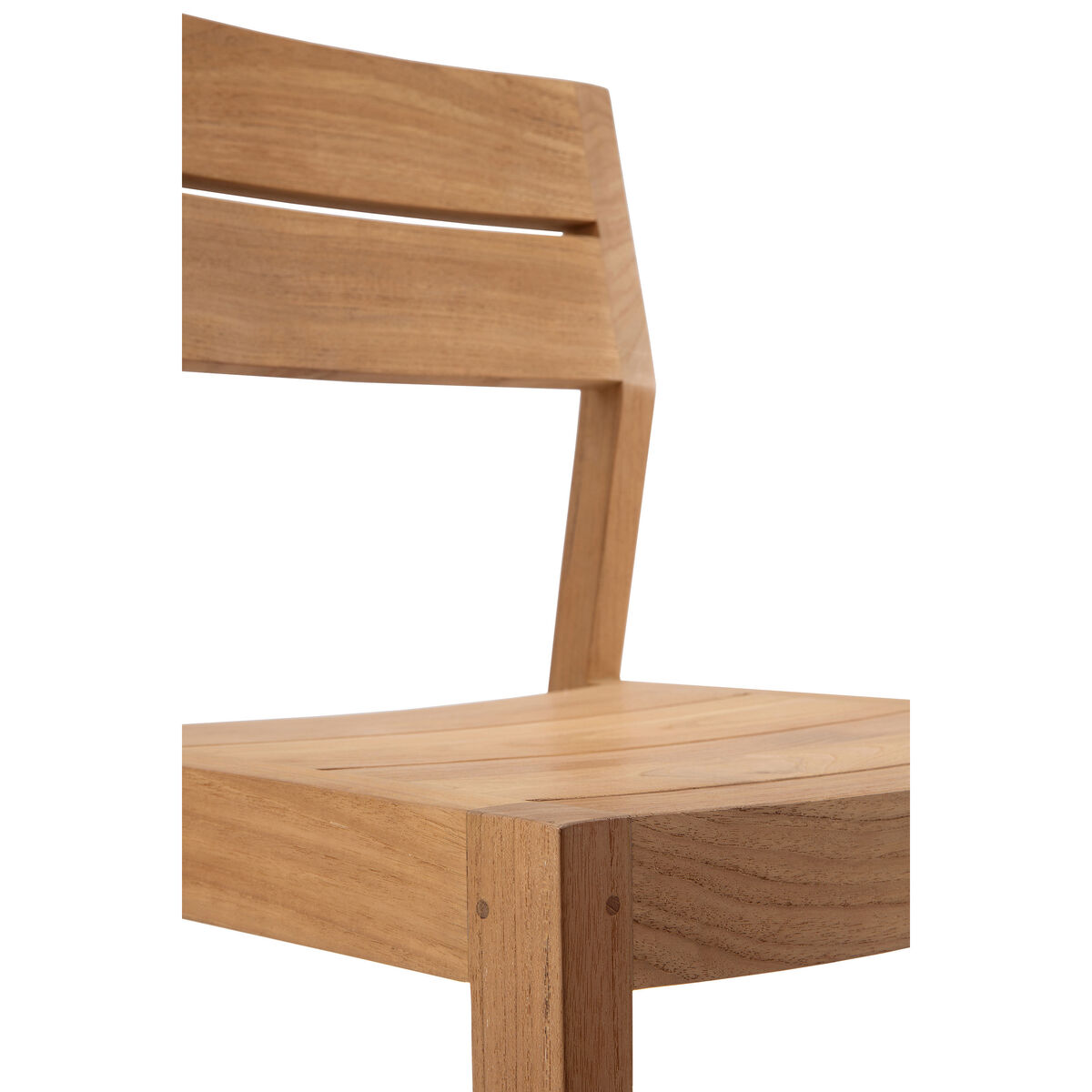 All the comfort and refinement of indoor furniture for your gardens and terraces. For twenty-five years, Belgian brand Ethnicraft has paid tribute to the beauty and authenticity of solid wood. Timeless, extremely strong and durable, these are quality pieces of furniture that age wonderfully and are passed down from generation to generation. Handcrafted, Ethnicraft furniture is the result of exceptional know-how. Behind the apparent simplicity of the design hides a constant search for innovation. Integrating advanced techniques into the creative process, each new design is worked out down to the smallest detail. With the EX 1 chair, Belgian designer Alain van Havre combines sculptural elegance and contemporary craftsmanship in a graceful, airy form. The solid teak has not undergone any protective treatment. The wood is simply polished, allowing the natural oils to rise to the surface. The high density of teak wood makes it an excellent choice for outdoor use. Ethnicraft works closely with the Indonesian government agency responsible for managing the teak plantations originally established by the Dutch 150 years ago. Ethnicraft’s solid teak furniture is made in Indonesia. By deciding to set up its factory in Indonesia, Ethnicraft limits on the one hand the unnecessary transport of goods and therefore all the ecological damage that results from it, and on the other hand supports the people and the local economy by creating opportunities for employment and education, as well as job security. In addition, working with local populations, who are generally little informed about sustainable development, allows them to share these values and educates them so that they become aware of the issues in their everyday life.