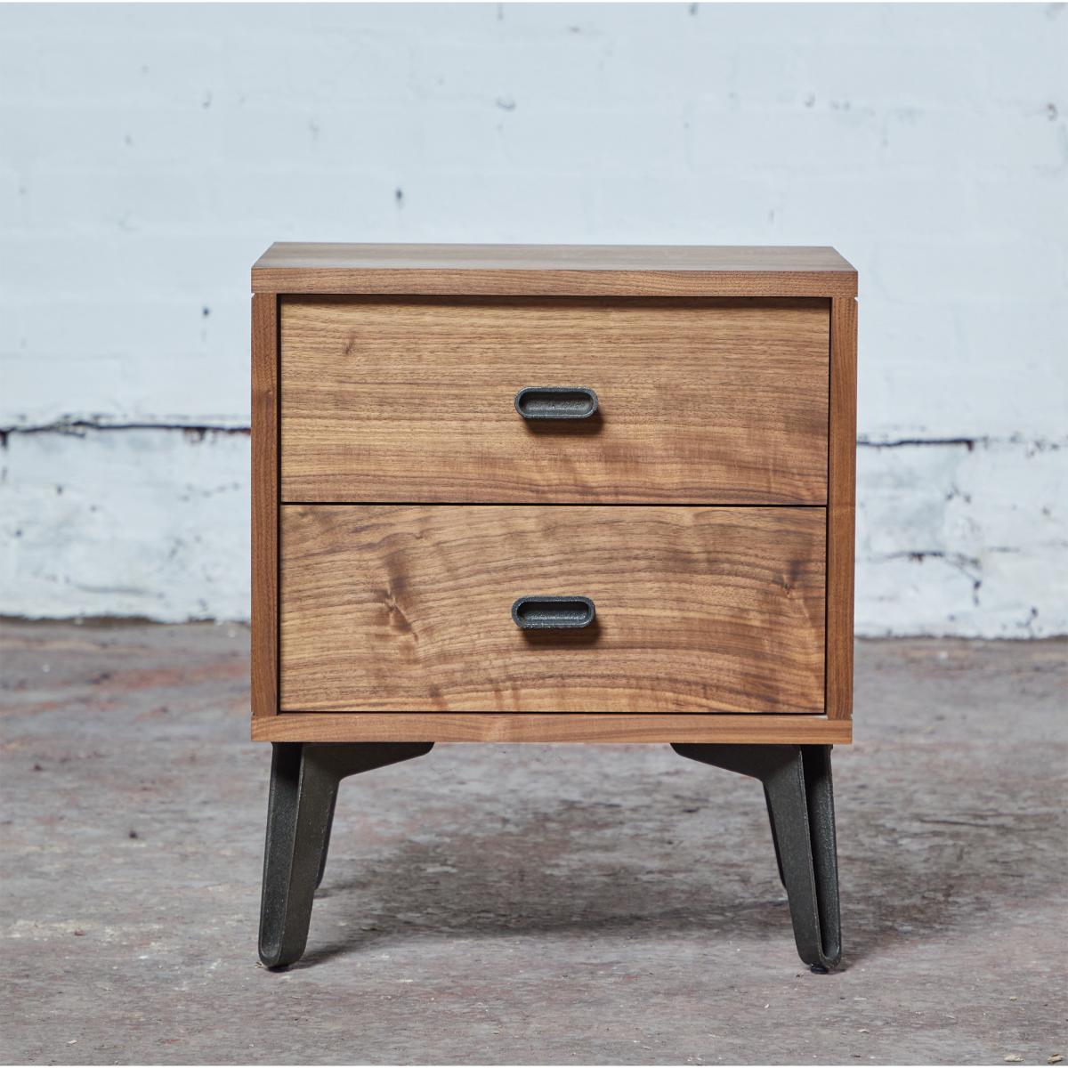 Designed by Matthew Hilton, the walnut Mc Queen Bedside Chest uses generous planes of solid natural walnut wood to create an elegant form that resonates with simplicity. The bedside chest itself is a coherent, elegant form featuring two drawers with cast iron handles, all balanced on subtly slanted cast iron legs that complement the Danish-oiled walnut’s dark grain. Its quietly functional structure is approachable yet contemporary and would make an enduring addition to your bedside area, or even as a side table in your living space. Manufactured by De La Espada’s expert craftspeople for Matthew Hilton, the Mc Queen Bedside Chest’s clean lines and timeless composition are endlessly appealing. Matthew Hilton is renowned as one of Britain’s most esteemed industrial designers and has designed for leading manufacturers across the world, over an illustrious career spanning 30 years. Please note: This is an ex-display piece and will show signs of wear proportional with use. The utmost effort is made to showcase each intricacy and imperfection accurately. This piece is priced and sold as seen, thus cannot be returned or refunded unless faulty or misdescribed; to learn more, please study section 4. 7 of our. Terms & Conditions.