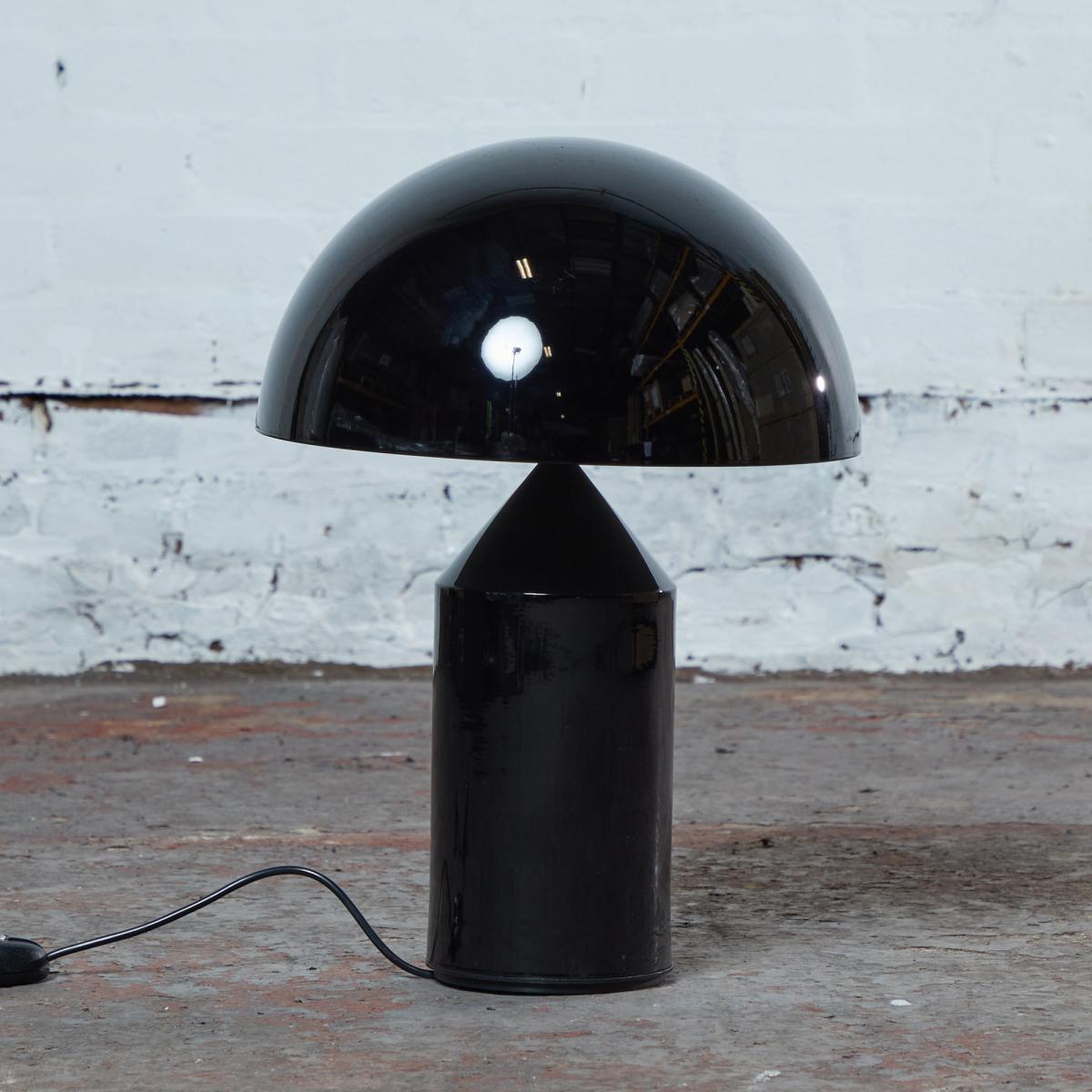 Designed in 1977 by Vico Magistretti, the award-winning black Atollo 239 Table Lamp is a timeless light source that is sure to be appreciated for years to come. Exquisitely crafted by Oluce using black-glazed metal, the dimmable lamp is composed of three geometric shapes; a cylinder, cone and hemisphere. Sculptural and decorative when unlit, the illuminated lamp emits a soft diffused glow throughout the room thanks to the innovative design. Revolutionising lighting design, the Atollo 239 Table Lamp has won countless awards over the years and is renowned across the world as one of Italy's design icons. Two-time recipient of the Compasso d'Oro, award-winning designer Vico Magistretti is lauded for his innovative, simple approach to design. His work is featured in museums and permanent collections all over the world. Requires: 2 x Max 75W E27 bulbs (not included)Please note: This is an ex-display piece and therefore may show signs of wear proportional with use. The utmost effort is made to accurately showcase each intricacy and imperfection, and this piece is sold as seen.
