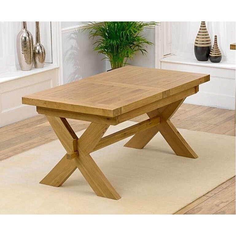 The Bordeaux 160cm Oak Extending Dining Table brings rustic charm and absolute reliability to any dining room or kitchen. Comfortably seating 4 people without extending and up to 6 when the extension is in place, the table is both elegant and incredibly versatile. Crafted from oak, the Bordeaux table is finished with a light lacquer that protects the wood and imparts a subtle sheen on the oak. The cross-leg design distinctive to the Bordeaux range enhances the durability of the table. When extra room is required, the internal extension mechanism with metal runners allows the table to extend to 200cm in an instant. When the table is not extended, the solid oak extension panel is stored inside the table for ultimate discretion and convenience. PLEASE NOTE: This is an ex-display item. All Ex-display items are non-refundable (excluding delivery damage and manufacturing faults).Ex-display items may show signs of standard wear and tear, however any significant marks or damages will be specifically stated below.
