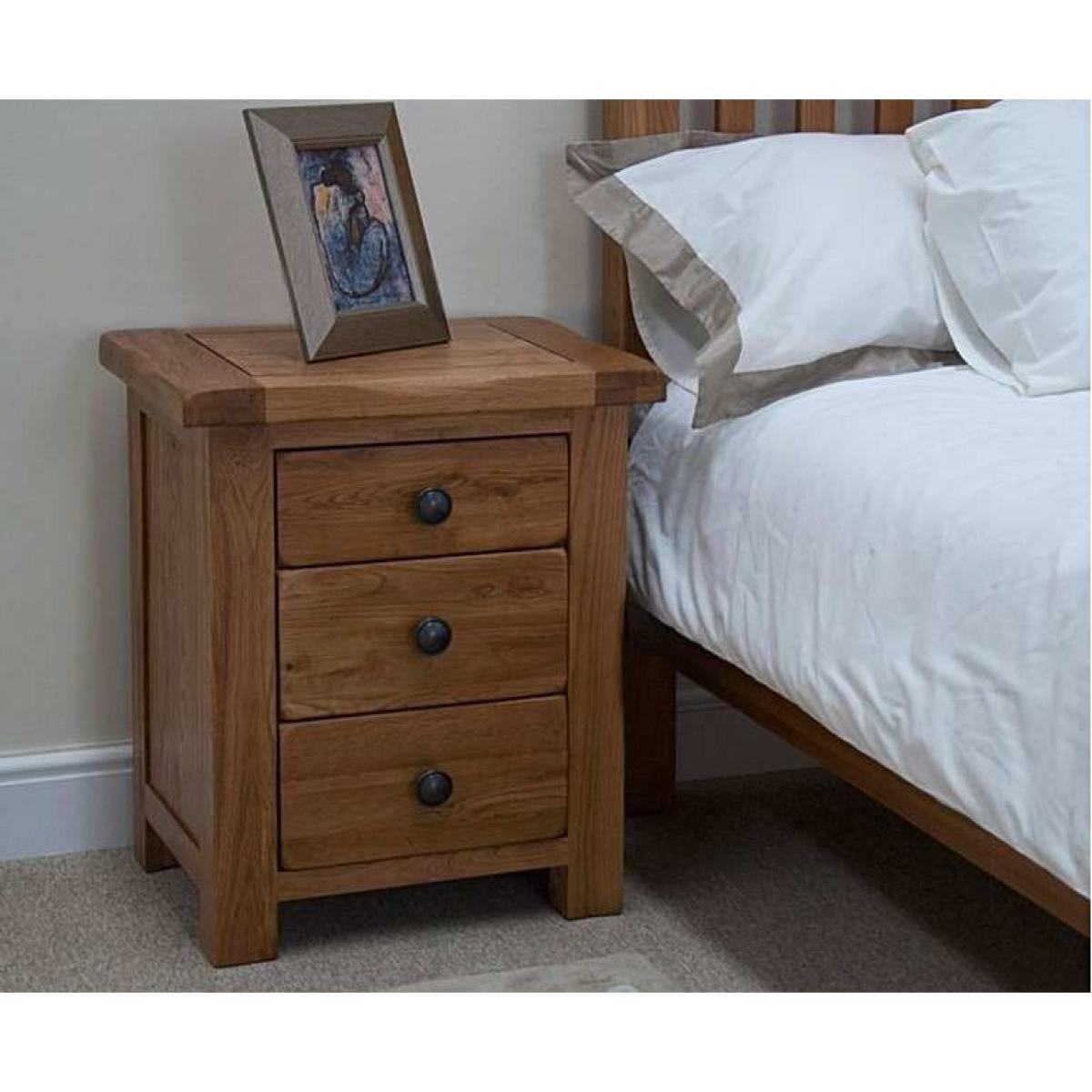 The Bramley Oak Bedside Chestt is a superb addition to any bedroom. A brilliantly practical piece, the cabinet features three generously sized drawers to help keep all your everyday items neat and tidy. The Bramley Bedside Chest is a perfectly crafted piece of bedroom furniture featuring quality craftsmanship. Fashioned from solid oak, the cabinet has a waxed finish which beautifully accentuates the rustic distressed look of the cabinet. PLEASE NOTE: This is an ex-display item. All Ex-display items are non-refundable (excluding delivery damage and manufacturing faults).Ex-display items may show signs of standard wear and tear, however any significant marks or damages will be specifically stated below.
