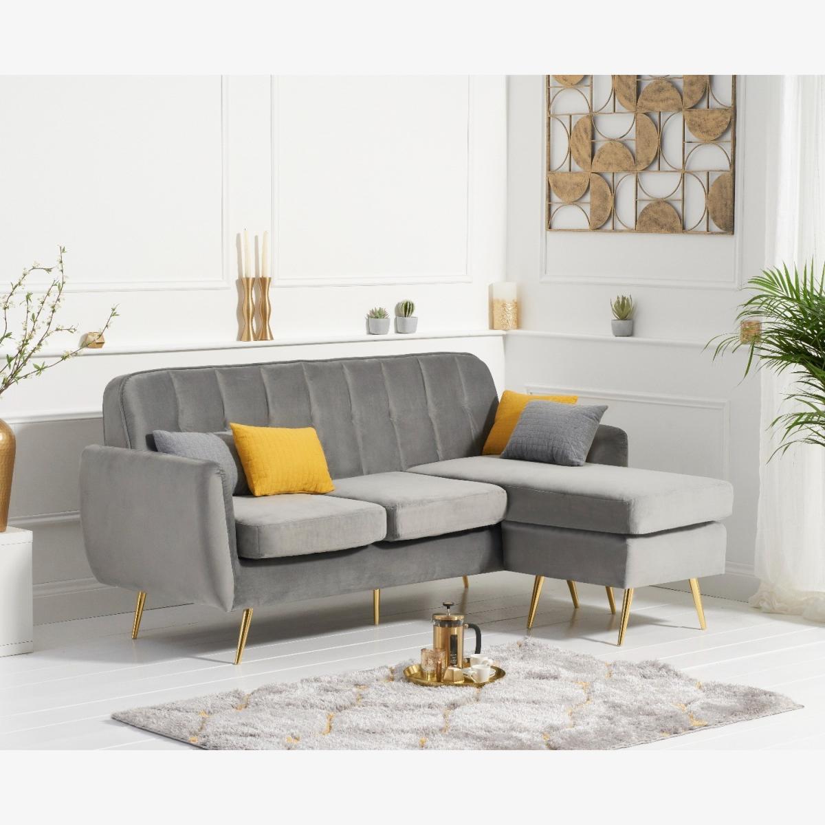 The Ex-display Brema grey velvet corner sofa with gold legs is a stylish and versatile piece that works well in both contemporary and retro-inspired interiors. I love its plush velvet upholstery, which adds a touch of luxe without feeling overly formal, making it suitable for cosy family living rooms or relaxed lounging areas. The grey tone acts as a neutral base, allowing for flexible styling with colour accents-think bold cushions or throws in mustard, teal, or blush. To keep the look fresh and modern, pair it with minimalist side tables and simple lighting. Practical tips include layering with textured cushions for added comfort and visual interest, and matching the gold legs with other metallic accessories to create a cohesive, elegant scheme. This sofa is an excellent choice for those wanting a statement piece that balances style and functionality.