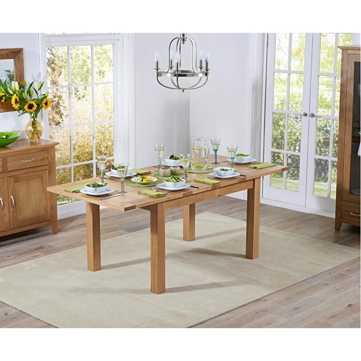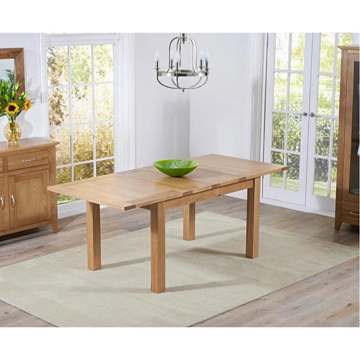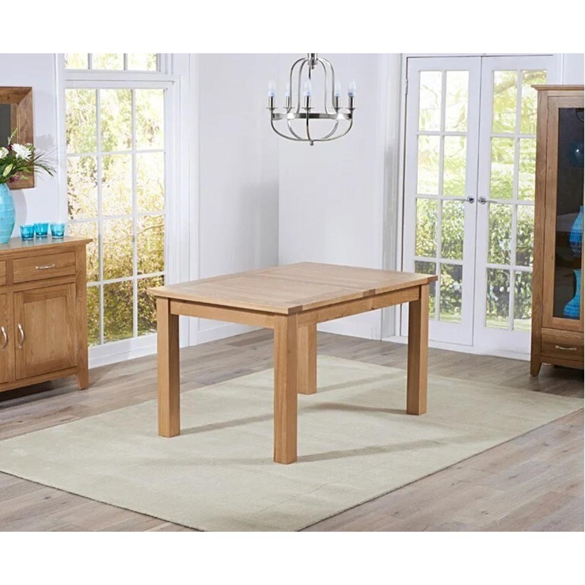 Classical simplicity and functional elegance characterise the Cheadle collection of oak tables. Extending for more space and coming in a range of sizes, this tasteful collection has a table to suit everyone's needs. PLEASE NOTE: This is an ex-display item with SIX BROWN chairs only. All Ex-display items are non-refundable (excluding delivery damage and manufacturing faults). Ex-display items may show signs of standard wear and tear, however any significant marks or damages will be specifically stated below.