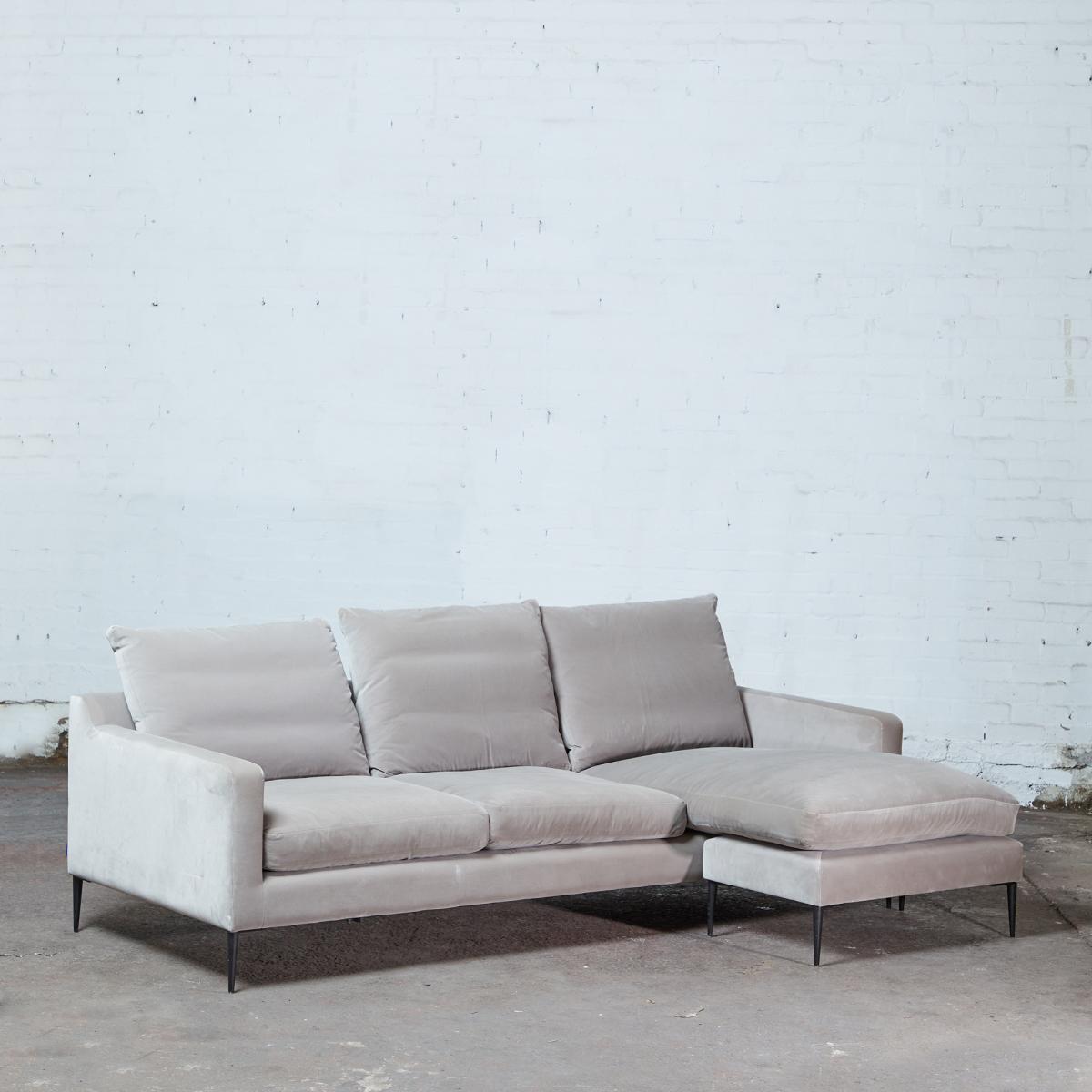 Designed exclusively for The Conran Shop, the Chiltern Slim Corner Sofa is a compact and contemporary piece that offers superior comfort, accented with velvet upholstery. Elevated on black metal legs, the elegant Chiltern Slim has been specially designed to lend luxurious design to even the most compact of spaces. Showcasing a boxy shape and slim squared-off arms, the sofa provides the perfect place to wind down. The design is finished with an adjustable ottoman that can be used to form a corner module by placing it on the left or right-hand side depending on your space. The sofa is available in our deluxe and private duro velvet upholstery, woven in Italy for a hand-selected touch to award your space with a personal and sophisticated piece of furniture. Fabric Information Duro Velvet: 100% cotton thick pile velvet woven in Italy. Please note: This is an ex-display piece and therefore may show signs of wear proportional with use. The utmost effort is made to accurately showcase each intricacy and imperfection, and this piece is sold as seen. Due to the bespoke nature of each piece of furniture, a small discrepancy between the quoted and actual dimensions may occur.