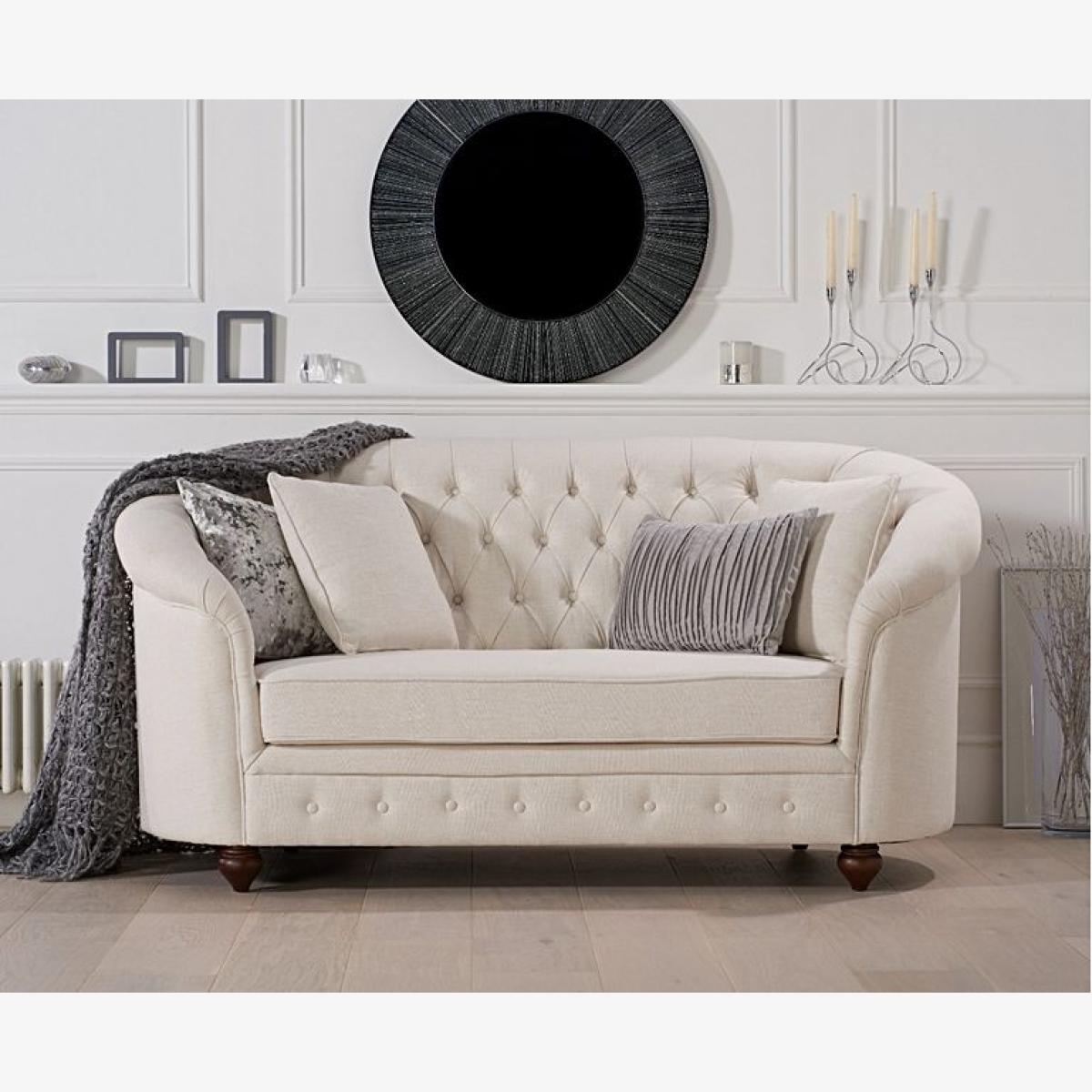 Ex-display Chloe Chesterfield Ivory Linen Fabric Two-Seater Sofa