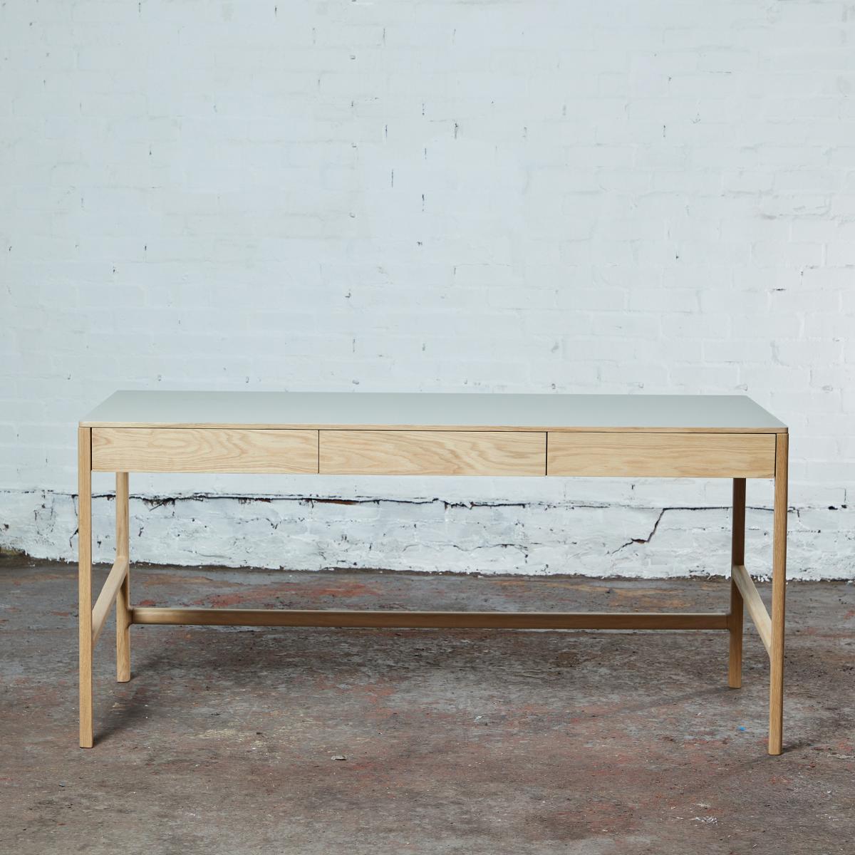 Matthew Hilton refines the most important component of the home office with his three-drawer Domus Desk, exclusively for The Conran Shop. The elegantly shaped desk boasts a solid oak frame, fitted with three discreet yet capacious drawers and completed with a durable and antibacterial linoleum desktop. Regarded as one of Britain's most esteemed industrial designers, Hilton infuses complex engineering and seemingly effortless simplicity into each piece he creates. Working with luxurious materials such as solid wood, cast iron and brass, Hilton's designs are often inspired by long-established furniture forms that he so expertly refreshes. Please note: This is an ex-display piece and therefore may show signs of wear proportional with use. The utmost effort is made to accurately showcase each intricacy and imperfection, and this piece is sold as seen.