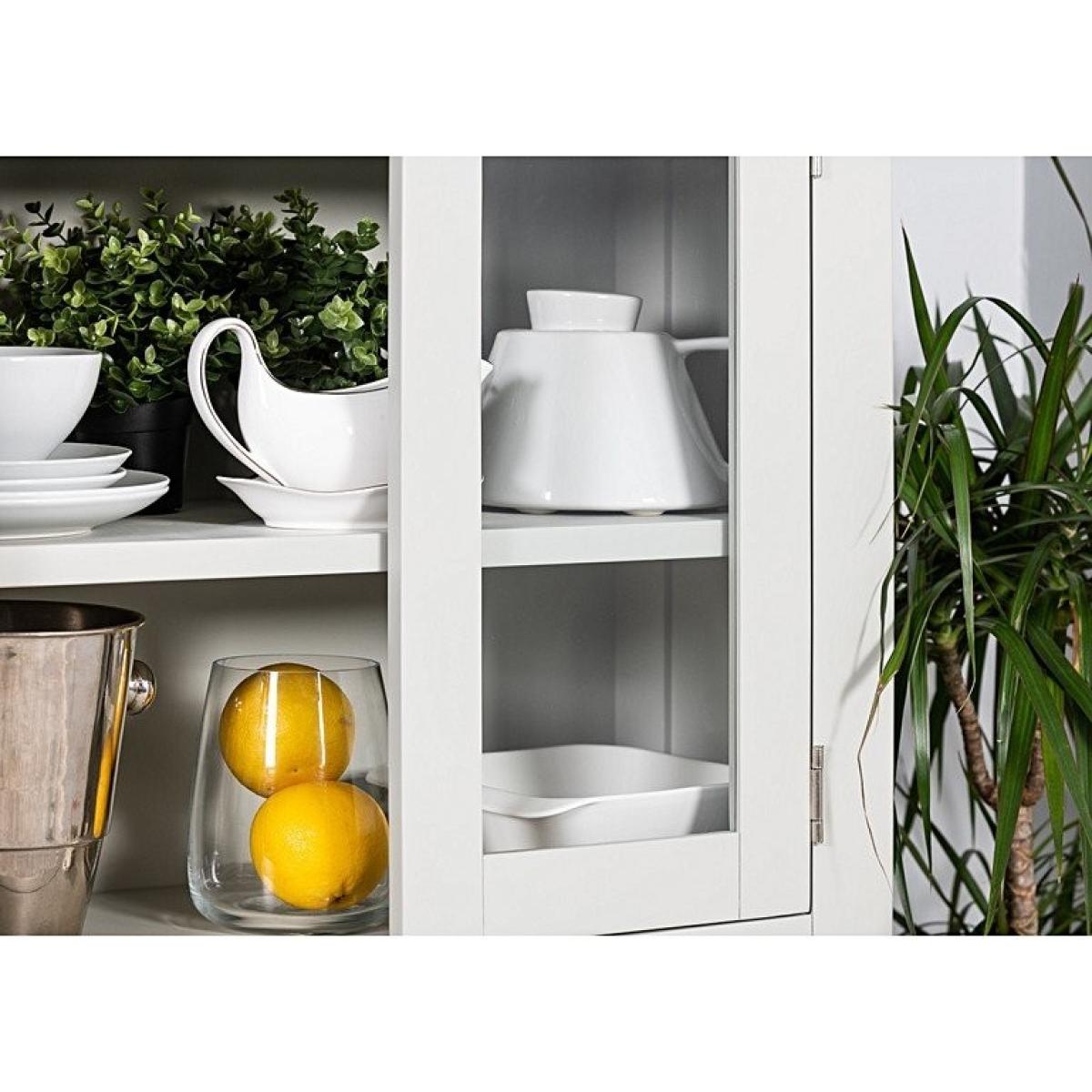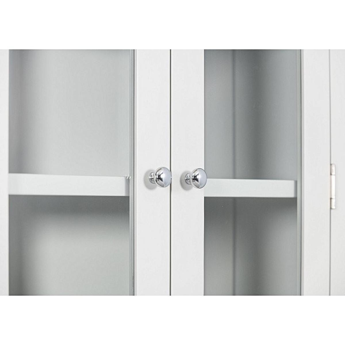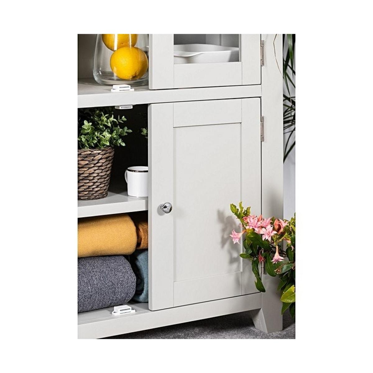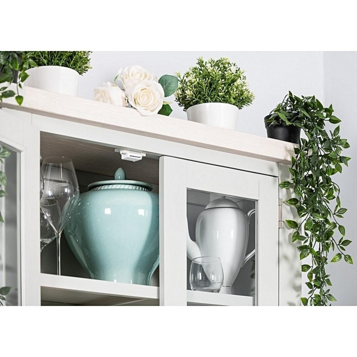 A traditionally styled display cabinet which features two partially glass fronted doors, behind which hide four shelves. All four shelves are on show to display your items and there’s one hidden behind two doors below, perfect for storing anything you don’t want guests to see. In keeping with the rest of the Felix range, this beautiful cabinet is crafted from solid oak, pine and oak veneer and finished with a contemporary grey paint. Traditional styling with plenty of storage space Hidden space for an uncluttered look. High quality solid oak, pine and oak veneer. Fully AssembledPLEAS. E NOTE: This is an ex-display item. All Ex-display items are non-refundable (excluding delivery damage and manufacturing faults).Ex-display items may show signs of standard wear and tear, however any significant marks or damages will be specifically stated below.