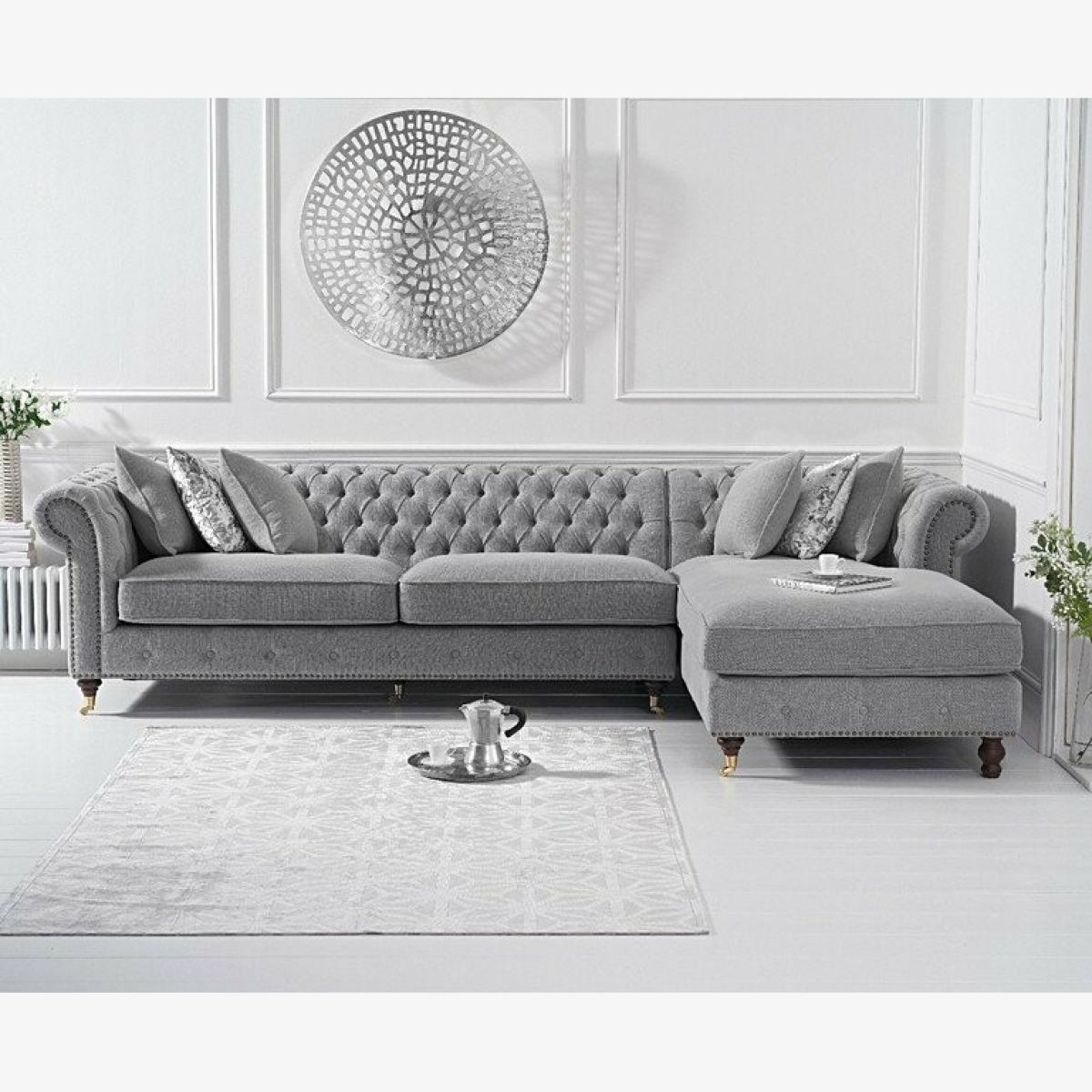 Ex-display Flora Grey Linen Right Facing Chesterfield Corner Chaise Sofa