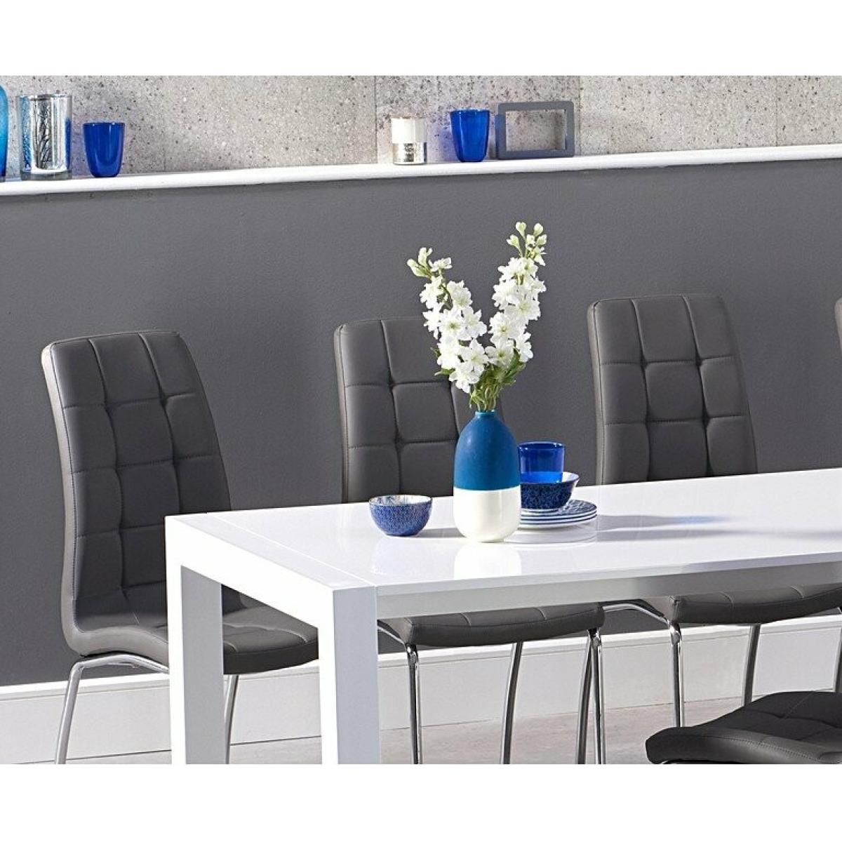 The Joseph collection of extending tables combines elegance and sophistication with practicality. The tables open up for breakfast, lunch, or dinner events with many guests, so there's always plenty of space at the table. PLEASE NOTE: This is an ex-display item with SIX BLACK chairs only. All Ex-display items are non-refundable (excluding delivery damage and manufacturing faults). Ex-display items may show signs of standard wear and tear, however any significant marks or damages will be specifically stated below.
