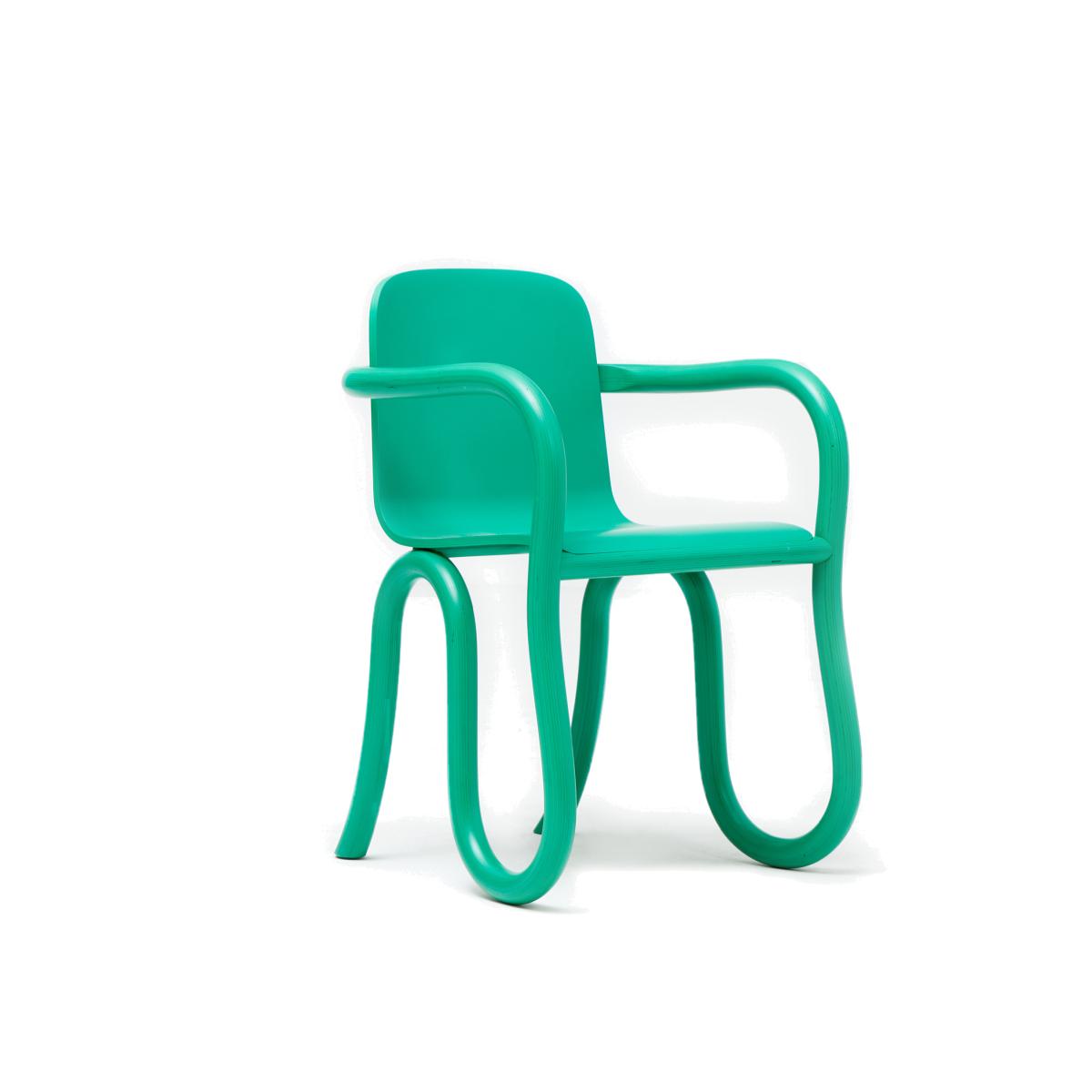 Named after the small Finish town of Kolho, this sculptural Dining Chair in spectrum green is designed by American artist Matthew Day Jackson for Made by Choice. Each chair is expertly crafted from plywood using advanced technology in Finland with a silhouette that embodies the space between reason and chaos. Inspired by and coinciding with the 50th anniversary of the Apollo 11 moon landing, the chair is finished with an innovative Formica laminate that reimagines the moon's surface to scale. Represented by contemporary and modern art gallery Hauser & Wirth, Matthew Day Jackson's artistry encompasses sculpture, painting, photography and so much more. Centred around the themes of the human mind, technological advancement and the American Dream, his works have been exhibited and lauded all over the world. Please note: This is an ex-display piece and therefore may show signs of wear proportional with use. The utmost effort is made to accurately showcase each intricacy and imperfection, and this piece is sold as seen.