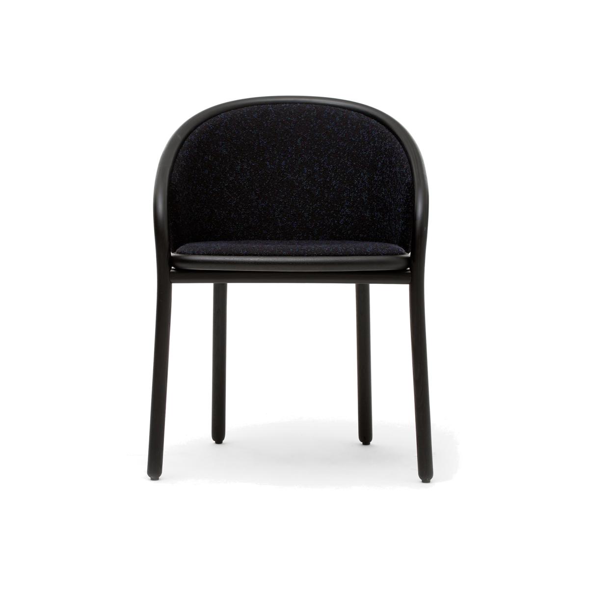 Winner of a Design Guild Mark, the black ash Latis Chair was created by Samuel Wilkinson exclusively for The Conran Shop. This edition is available fully upholstered in a blue Atom fabric from Kvadrat's collaboration with the esteemed Raf Simons. Expertly crafted in northern Italy with a lightweight steam-bent ash frame, the chair's striking curved appearance is achieved by a single piece of specially selected ash making up the main frame. The highly versatile design pairs perfectly with the coordinating Latis Desk. Lending a three-dimensional element to fabric upholstery, Atom is a coarse bouclé fabric with a seemingly random colourful speckled pattern. Truly representing Raf Simons' unique and distinctive sense of colour, the fabric is woven using two voluminous yarns and a technique that scatters random dots of colour across the surface. Please note: This is an ex-display piece and therefore may show signs of wear proportional with use. The utmost effort is made to accurately showcase each intricacy and imperfection, and this piece is sold as seen.
