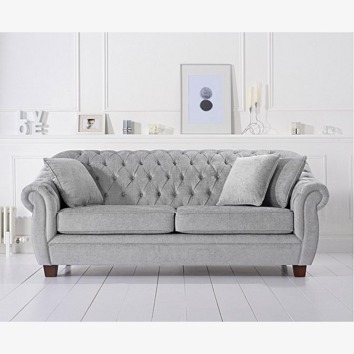 Ex-display Lilly Chesterfield Grey Plush Fabric Three-Seater Sofa