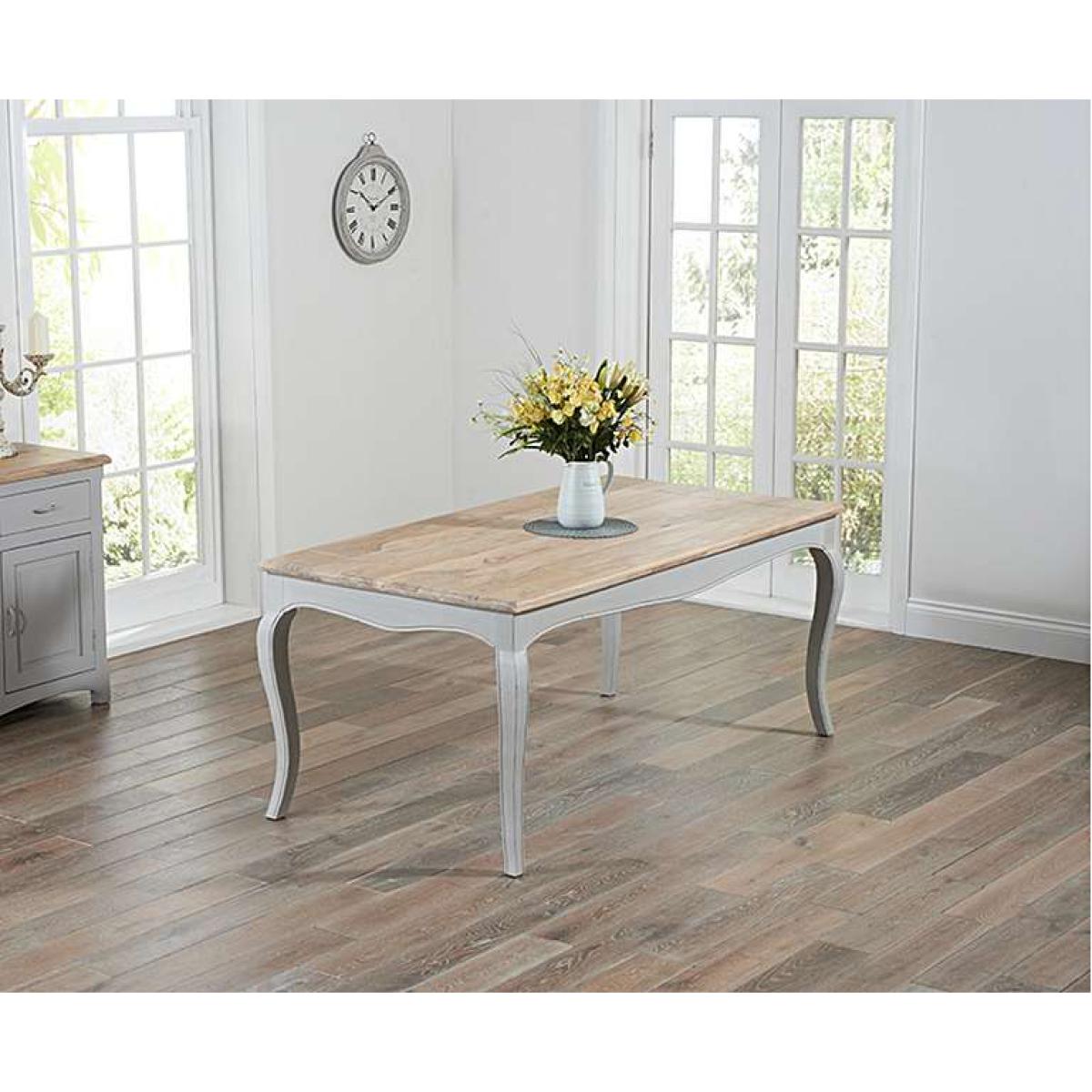 The Parisian 175cm Shabby Chic Dining Table brings distinct style and practicality to any dining area. A stunning setting for every occasion, the shabby chic dining table is designed to comfortably seat 8 people. Carefully crafted from resilient solid acacia, the large dining table features a smooth handmade table top with a clear protective lacquered finish for a stunning natural look. The table top is supported by elegantly bowed grey painted legs for a striking contrast. PLEASE NOTE: This is an ex-display item. All Ex-display items are non-refundable (excluding delivery damage and manufacturing faults).Ex-display items may show signs of standard wear and tear, however any significant marks or damages will be specifically stated below.