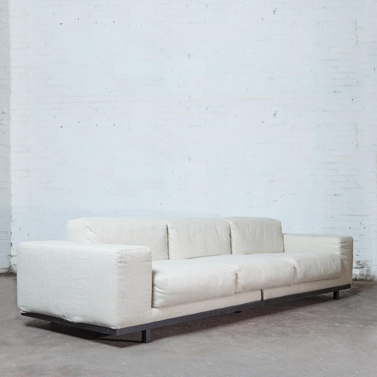 Designed exclusively for The Conran Shop and crafted in Italy, the refined contemporary lines of the 5-Seater Planar Plinth Sofa offer sumptuous comfort and stylish, uncomplicated aesthetics. Showcasing a distinctive style, the sofa is built around a solid wood frame with feather and foam deep seat cushions and a low back for a truly indulgent place to relax. Complete with generous arm support and a black-stained fir plinth base, it's accented with a selection of fabrics from The Conran Shop's upholstery edit. The fabric edit is a curated collection of hand-selected upholstery and shades created to award your space with a personal and sophisticated piece of furniture; complete your sofa with one of our throws and blankets. Fabric Information Linen: 100% linen crafted in Belgium. Please note: This is an ex-display piece and therefore may show signs of wear proportional with use. The utmost effort is made to accurately showcase each intricacy and imperfection, and this piece is sold as seen. Due to the bespoke nature of each piece of furniture, a small discrepancy between the quoted and actual dimensions may occur.