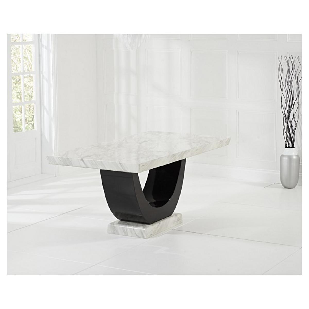 Uniquely beautiful and wonderfully contemporary, the Raphael 170cm Cream and Black Pedestal Marble Dining Table is a stunning addition to any dining space. Comfortably seating up to 6 diners, the marble dining table is as practical as it is visually impressive. The Raphael Dining Table features a smooth, strong cream surface supported by a distinct black curved pedestal complete with a sturdy base. The cream and black contrast beautifully, complementing the distinct design of the Raphael Table. The Raphael 170cm Cream and Black Pedestal Marble Dining Table is also available to purchase with Raphael Chairs and Verbier Chairs. Our stunning range of Marble dining furniture has a professional High Gloss finish which provides protection against heat. Ground floor delivery only. PLEASE NOTE: This is an ex-display item. All Ex-display items are non-refundable (excluding delivery damage and manufacturing faults).Ex-display items may show signs of standard wear and tear, however any significant marks or damages will be specifically stated below.