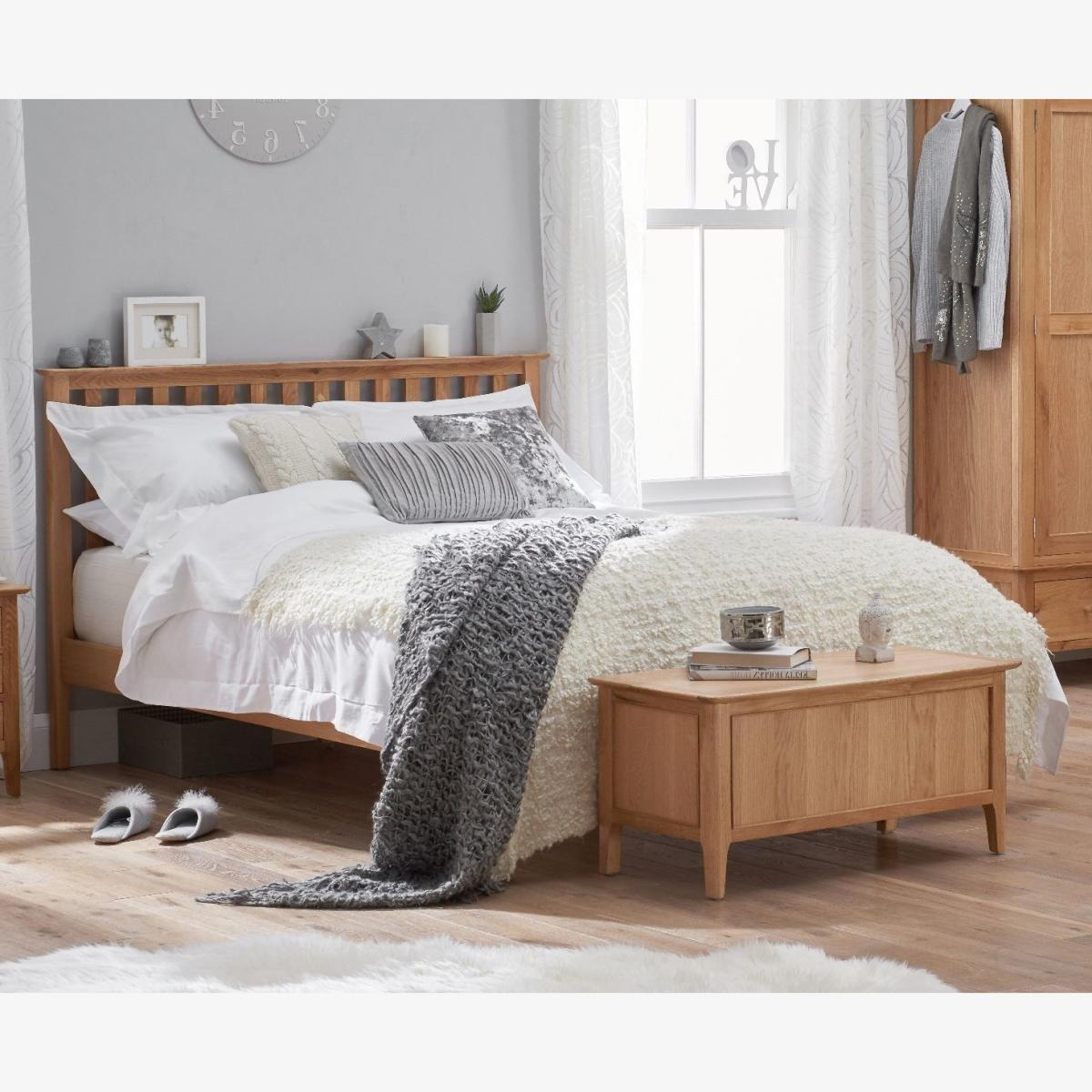 I love this Sadie oak bed for its timeless, versatile look that pairs well with a range of interior styles, from cosy scandi to traditional country. Its natural oak finish adds warmth and texture, making it a focal point in the bedroom without feeling overwhelming. A practical styling tip is to keep the bedding neutral and layered with textured throws and cushions to enhance its organic appeal. It works particularly well in bedrooms with light, neutral colour schemes or soft pastels, but can also be styled more contrastingly with dark or jewel-toned accents for a bolder look. Its sturdy yet classic design makes it an investment piece that will feel equally at home in both contemporary and more classic settings.