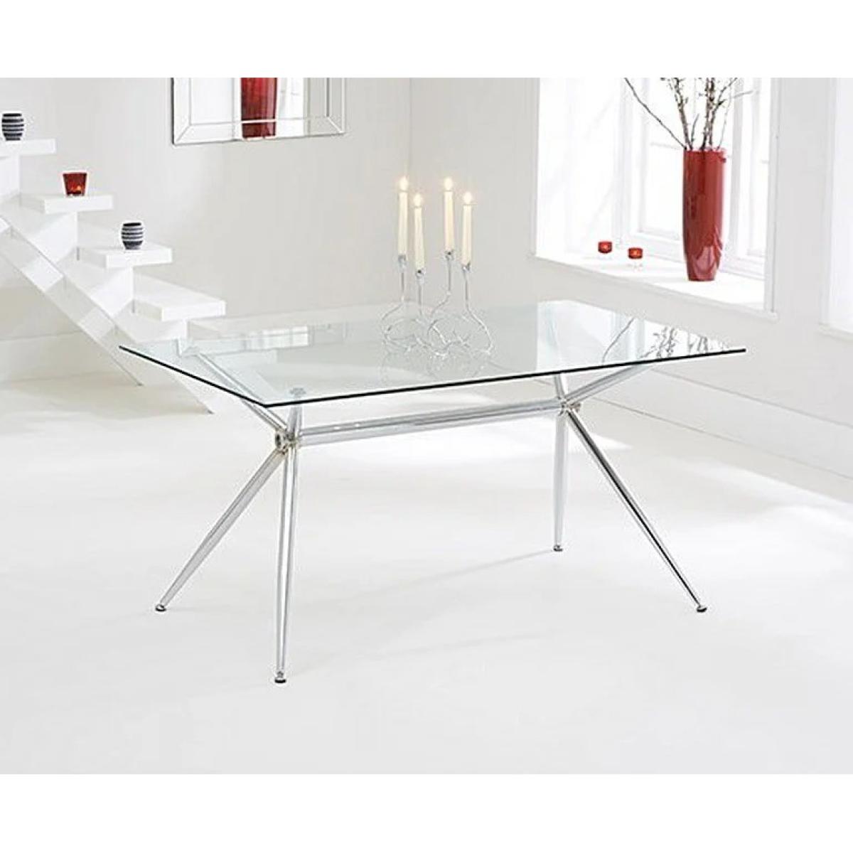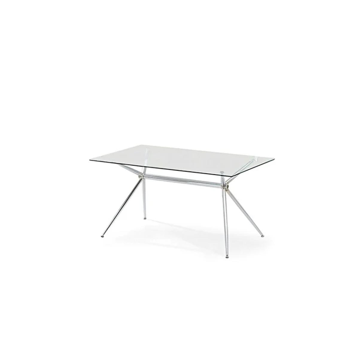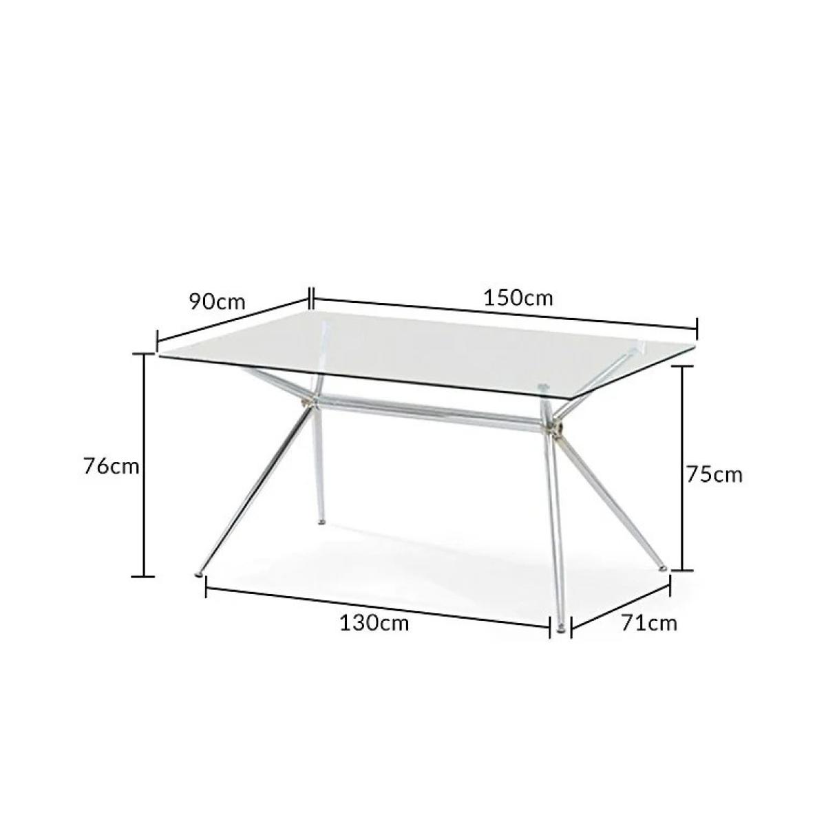 The Savelli collection brings together a glass tabletop with smart, angular metallic legs for a modern, tasteful finish that will create a sensation of space and tranquillity in any dining area. PLEASE NOTE: This is an ex-display item. All Ex-display items are non-refundable (excluding delivery damage and manufacturing faults).Ex-display items may show signs of standard wear and tear, however any significant marks or damages will be specifically stated below.