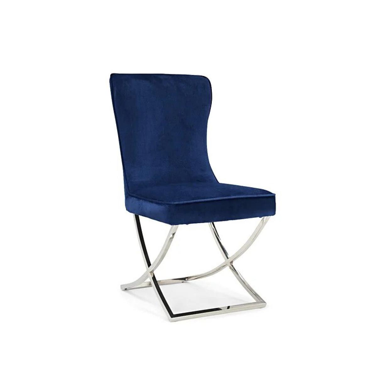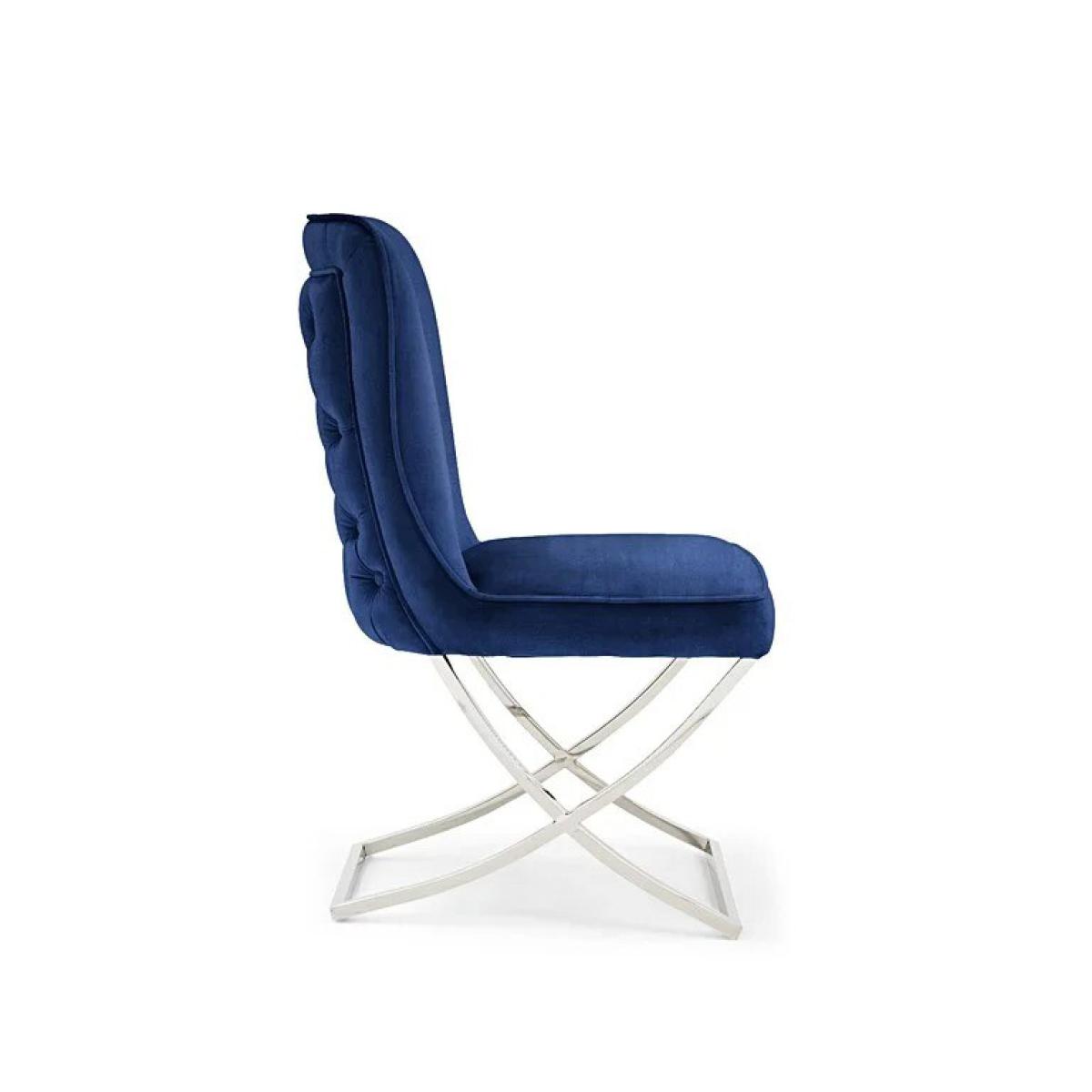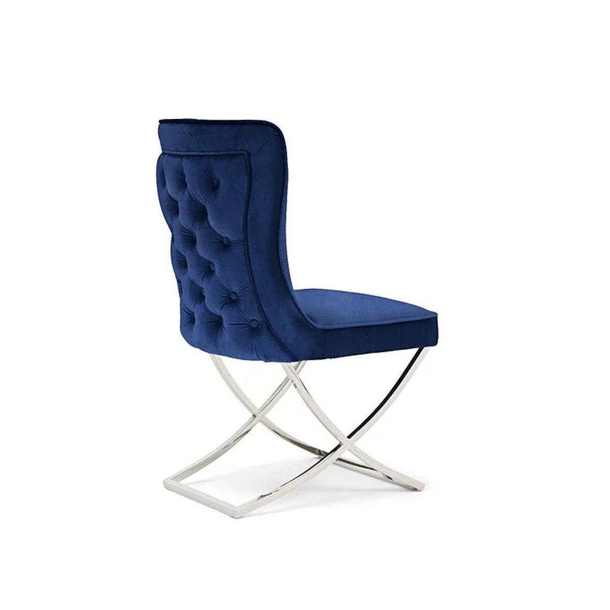 Exquisitely designed and unwaveringly stylish, the Giovanni collection is a work of art. Modern, fresh and unique, the chairs feature beautifully soft velvet buttoned upholstery combined with delicately curved metal legs. PLEASE NOTE: This is an ex-display item. All Ex-display items are non-refundable (excluding delivery damage and manufacturing faults). Ex-display items may show signs of standard wear and tear, however any significant marks or damages will be specifically stated below.