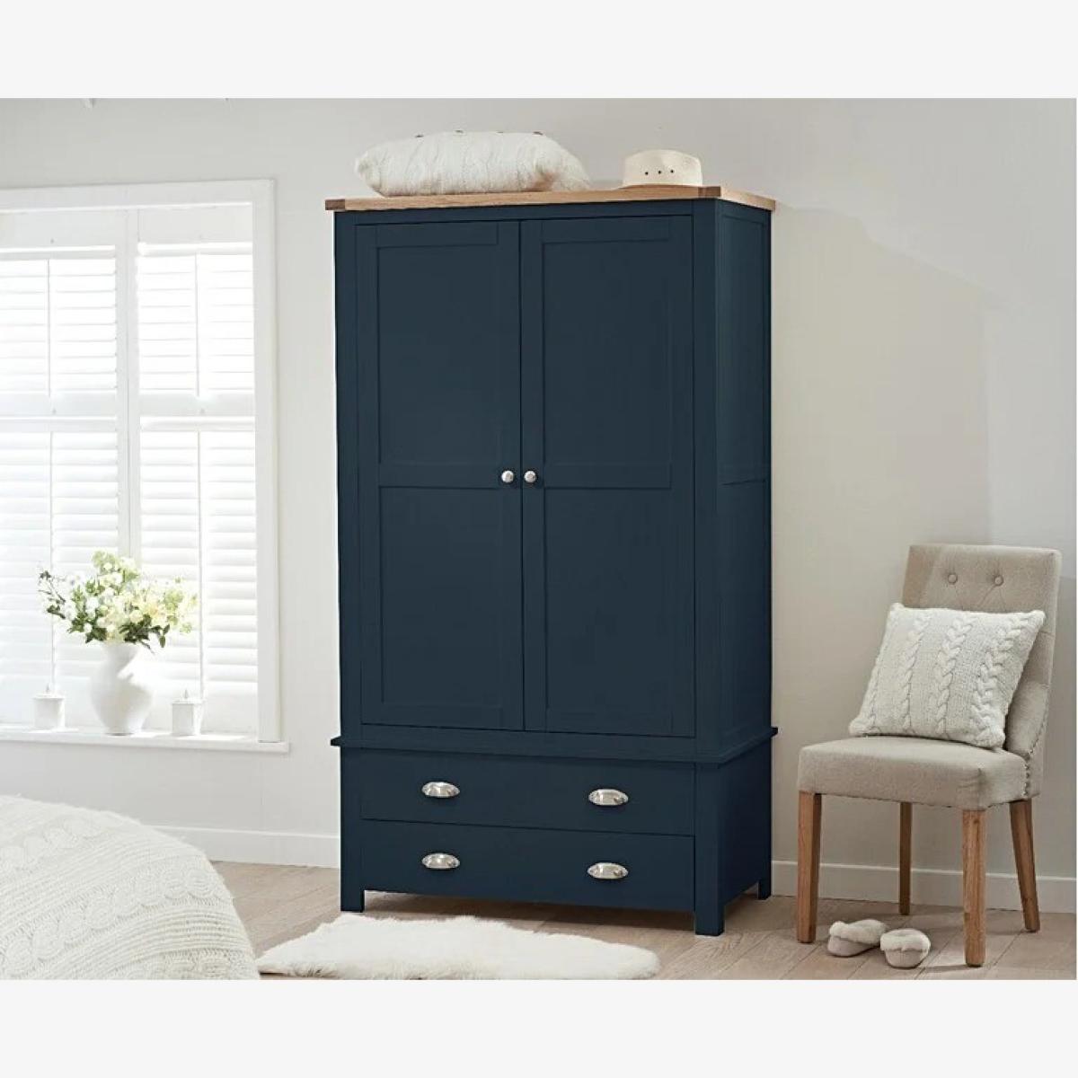 This wardrobe is a great choice if you're aiming for a mix of functional storage and classic style. The Somerset Oak finish paired with the bold blue exterior creates a timeless, yet statement piece that works particularly well in coastal, Scandi, or vintage-inspired interiors. Its two-door, two-drawer design offers plenty of organisation options, making it practical for everyday use. For styling tips, consider accessorising with minimalist or nautical-inspired decor to highlight the colour contrast, or keep it simple with neutral bedding and soft furnishings to let the wardrobe stand out. It’s versatile enough to fit into both modern and traditional settings, adding a touch of character while remaining highly functional.
