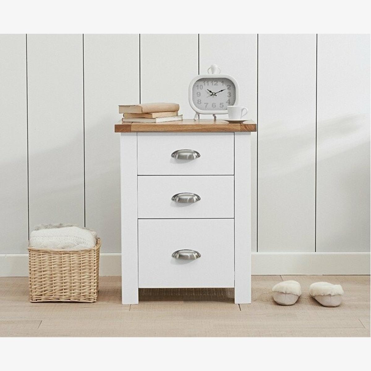 Ex-display Somerset Oak and White Tall 3 Drawer Bedside Table