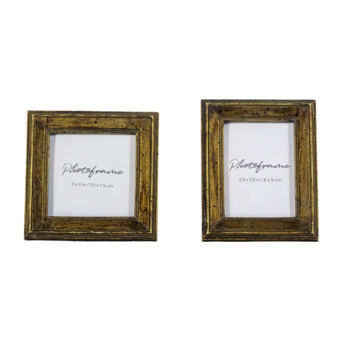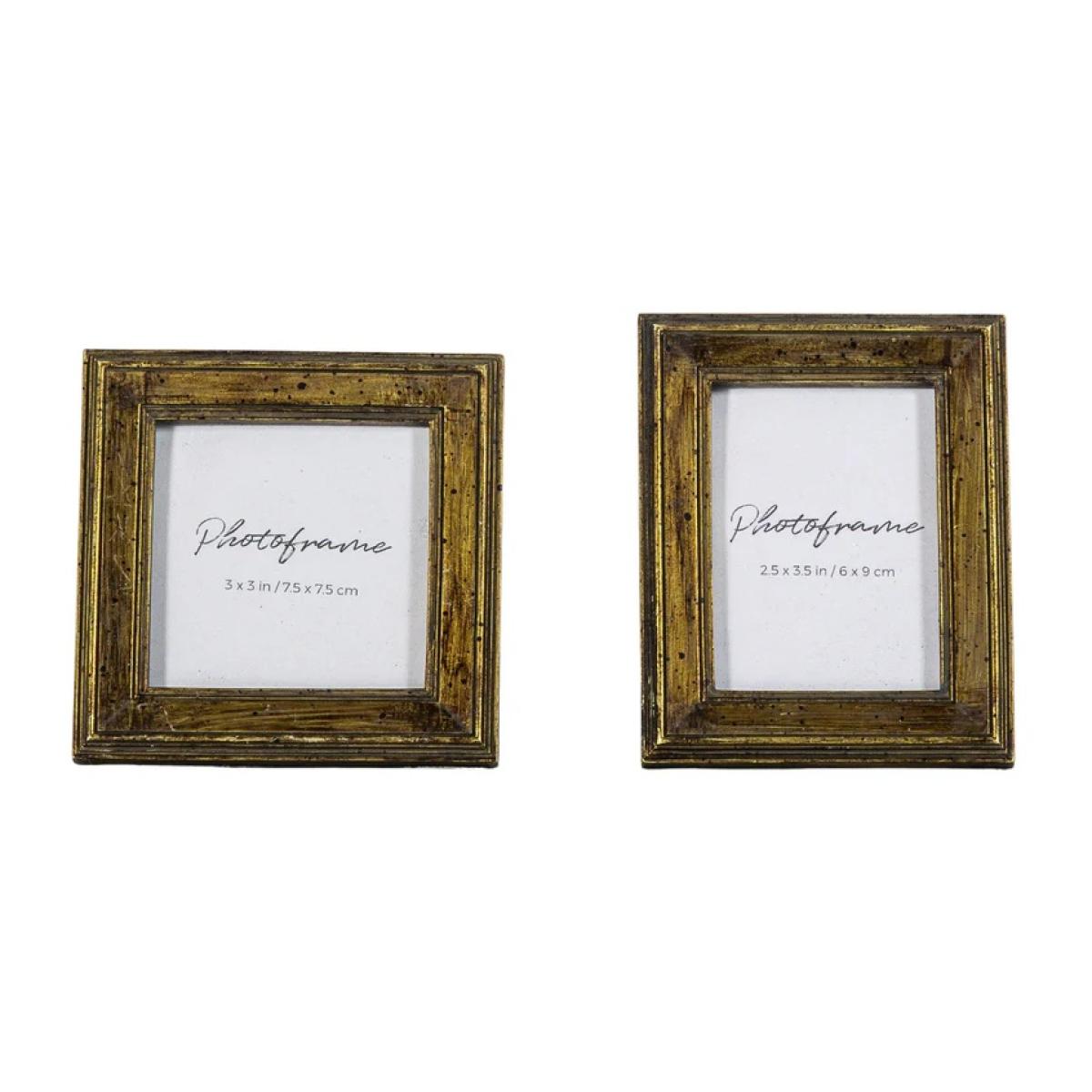 With a charming antique bronze finish, this mini photo frame set is an engaging option for framing your favourite photos. The resin frame fits a 3x3" and a 2.5x3.5" photo. Width 109mm Depth 17mm Height 109mm Colour - Bronze