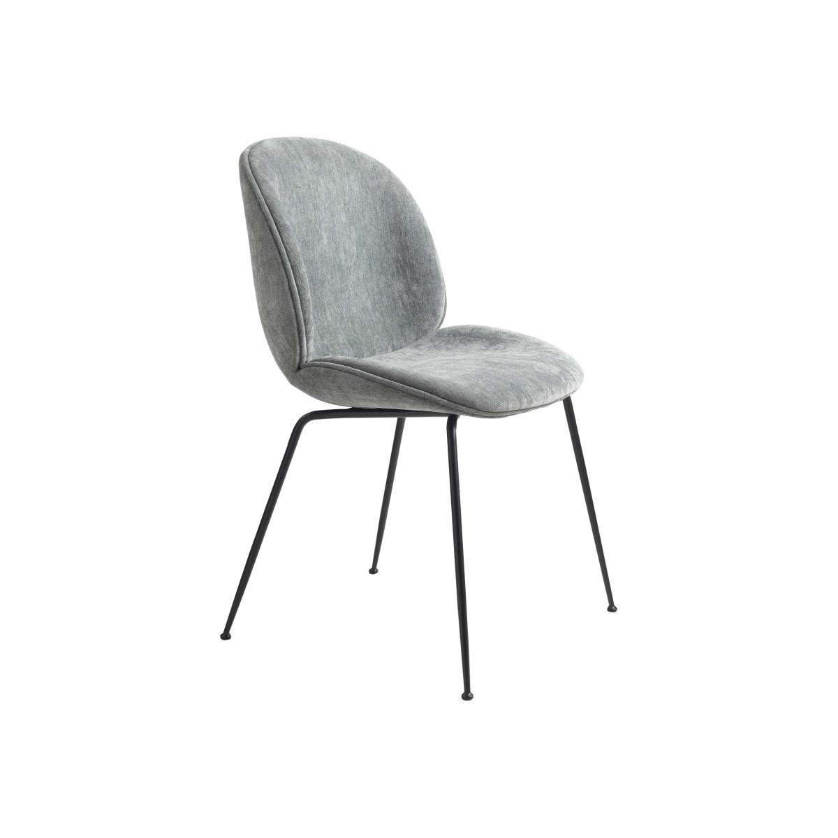 GamFratesi's iconic Beetle Dining Chair, inspired by the shape, shell and structure of the eponymous insect, is newly updated by the young design duo in sumptuous chenille upholstery, only at The Conran Shop. Stine Gam and Enrico Fratesi found the anatomy of the beetle captivating; the structure is composed of different plates separated by thin sutures, and it is this external shell that supports and protects the animal's body. All of these elements are perfectly linked and work together in a way that fascinated the designers. The design of the chair reinterprets the characteristic elements of the beetle's body: rigid on the outside and soft within, while maintaining optimum comfort and superior functionality. The seat and back of the Beetle are created using laminated moulded veneer. One of four new releases, this version of the Beetle Chair showcases a velvety chenille finish in dark green atop a black base, presenting the classic chair in entirely new fabric.