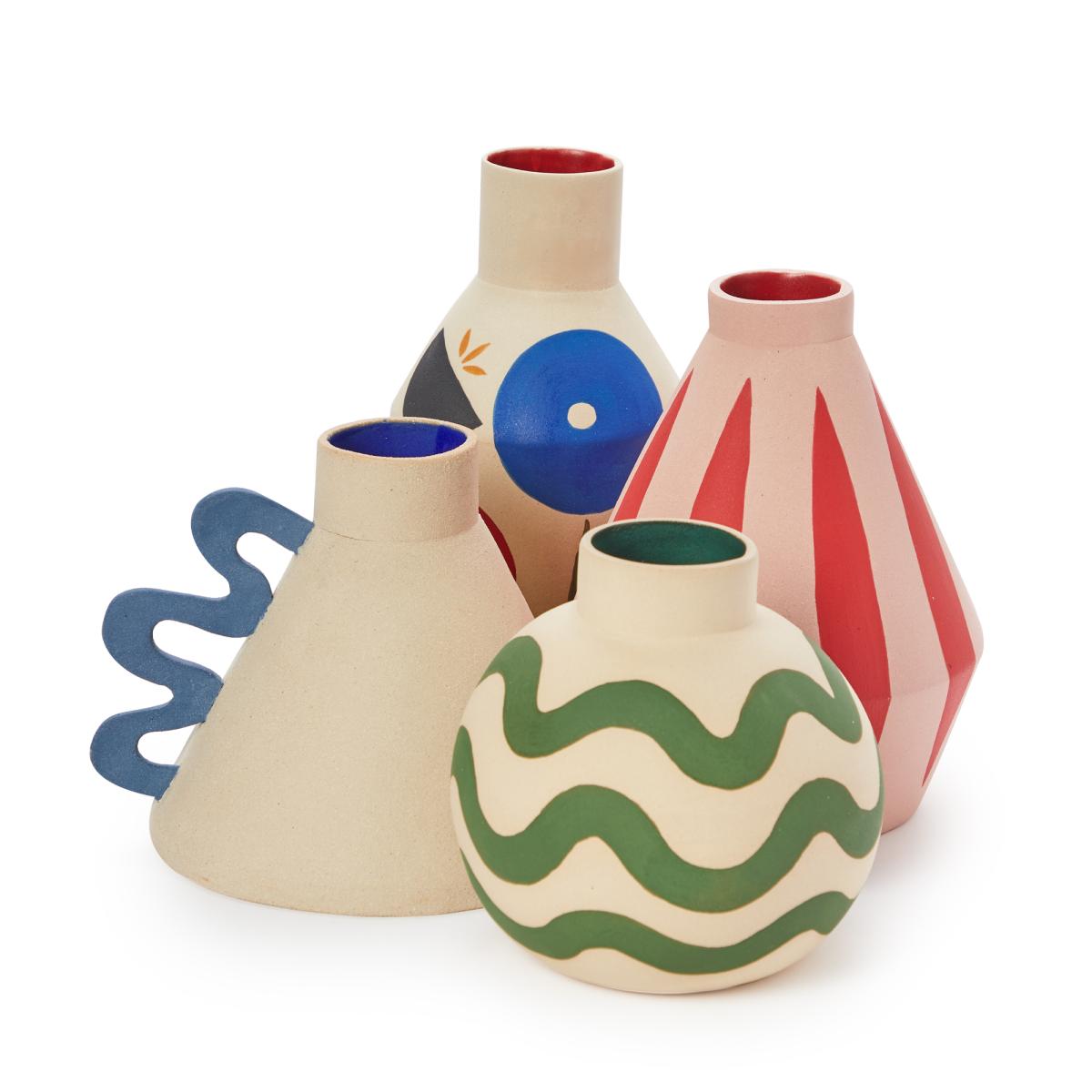 Handcrafted by designer and maker Sophie Alda at her Bristol studio, the striped Diamond Vase is designed exclusively for The Conran Shop. Fashioned from stoneware, each piece is individually moulded, finished and glazed by Alda, featuring vibrant designs to make the perfect centrepiece for a room. Suited to displaying bouquets of flowers or single stems, the unique vase would make the perfect gift for plant lovers and design enthusiasts alike. Bristol-based designer, artist and ceramicist Sophie Alda crafts bold graphic ceramics with an illustrative quality. Individually hand-building her vessels, each piece combines playful design, vibrant colours and intriguing patterns to craft truly unique creations.
