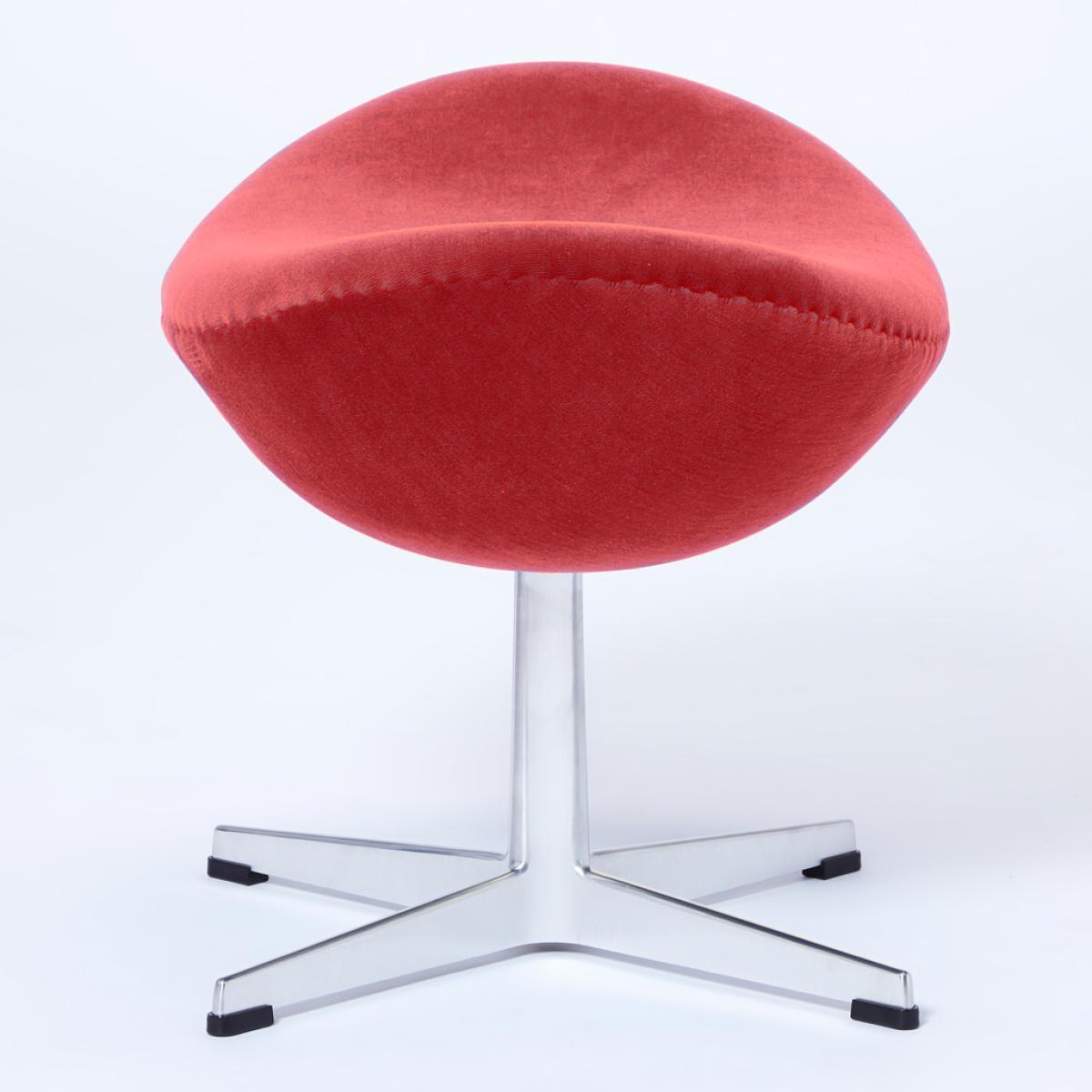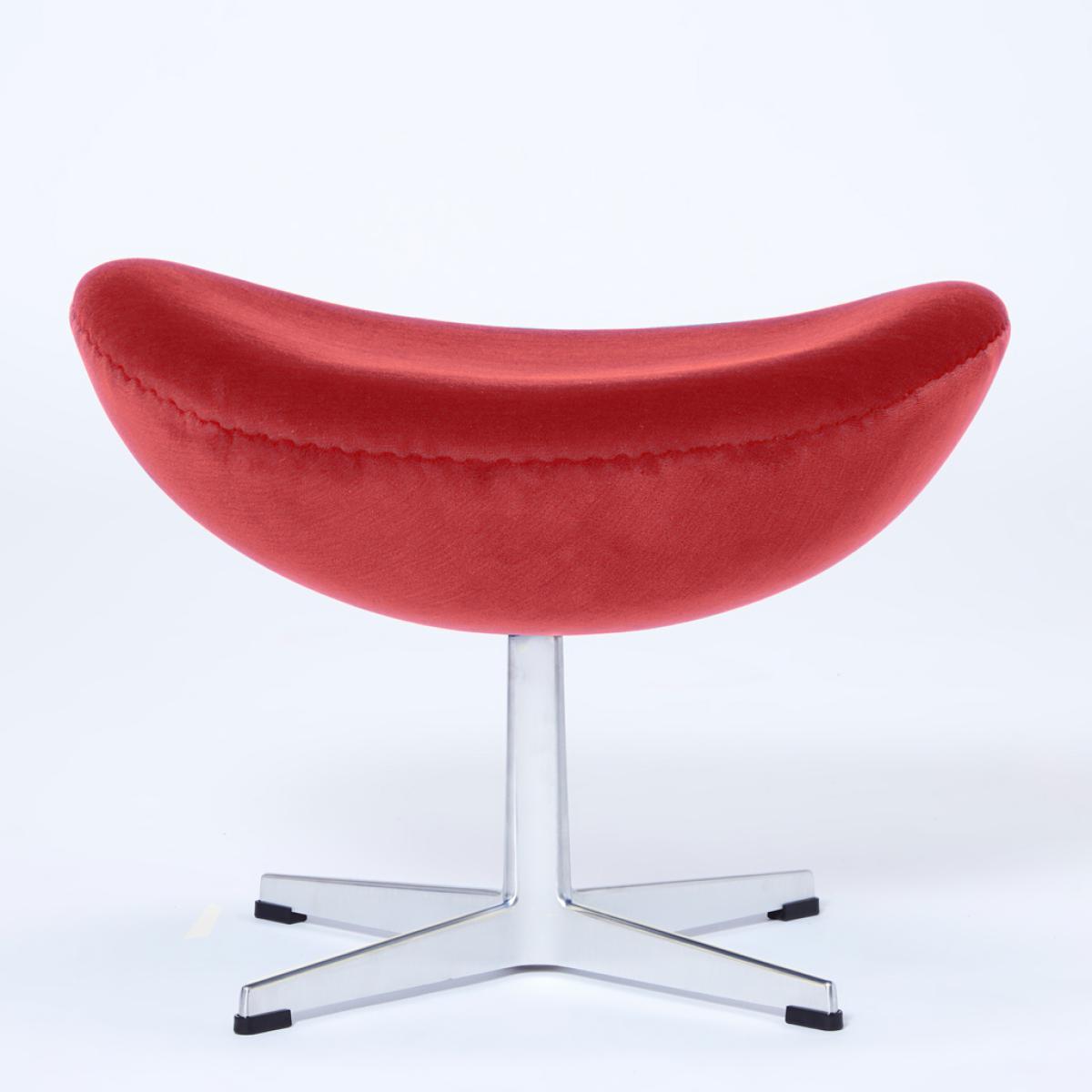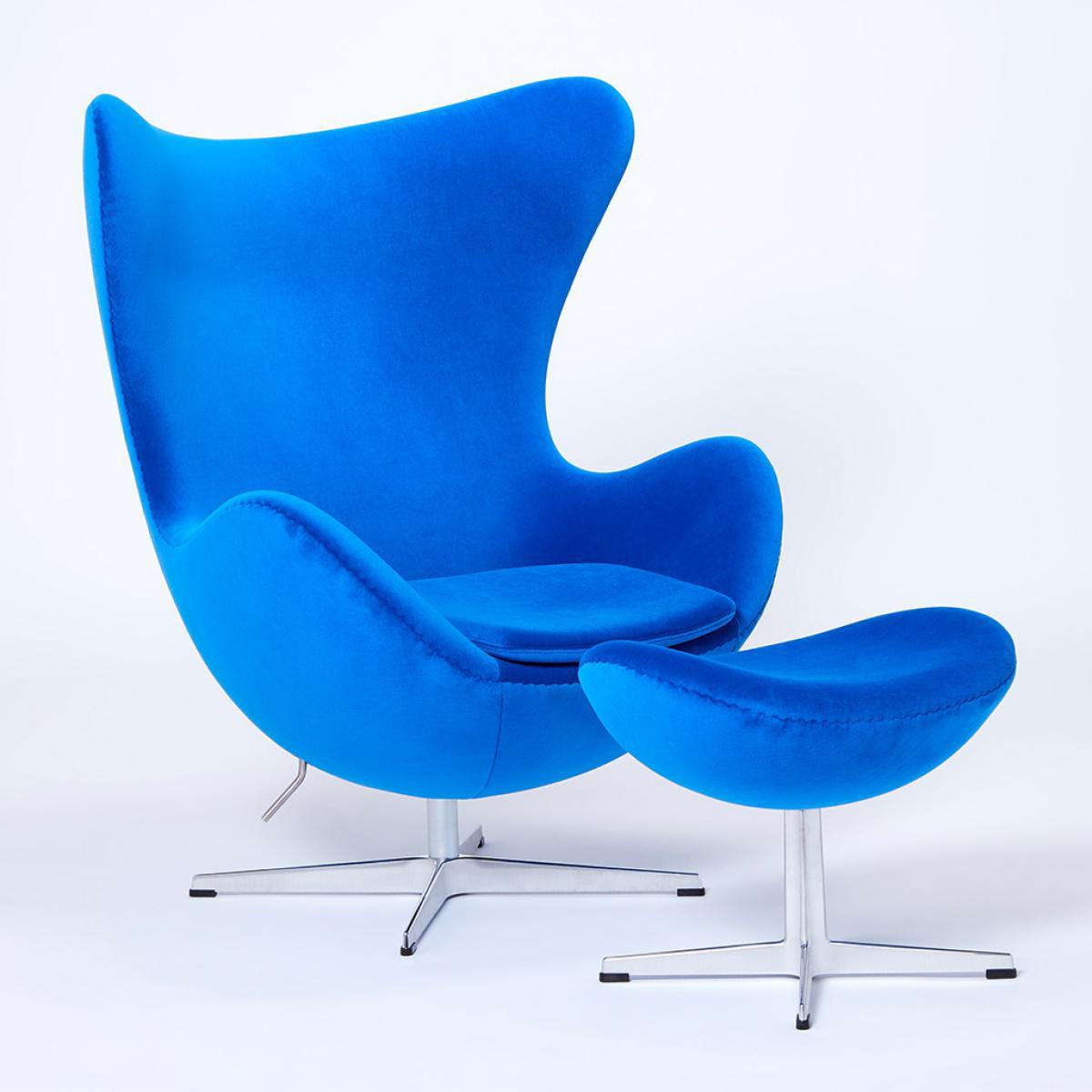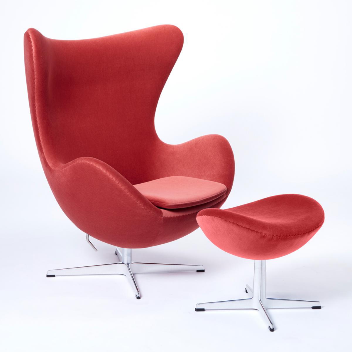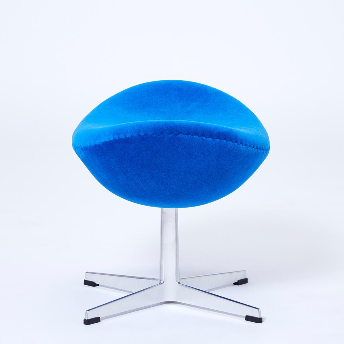 Arne Jacobsen's distinguished Egg Footstool is a hero of mid-century design. It is exclusively available at The Conran Shop in Kvadrat's Gentle 2 upholstery and manufactured by Fritz Hansen. The Egg was crafted using new techniques for its time, with Jacobsen being the first to utilise a strong foam inner shell underneath the footstool's upholstery. Using a unique process, Jacobsen tested and prototyped the shape and form of the footstool using clay in his home studio. The footstool sits atop a polished aluminium base and its intricate configuration requires bespoke upholstery. This edition boasts Febrik's new wool blend for Kvadrat, specially sourced from The Netherlands and marks the first time that the footstool is available to purchase in a velvet finish. Conceptualised in 1958 for Jacobsen's architectural endeavour, the Royal Hotel Copenhagen, the footstool's curves offer a sculptural contrast to the building's straight edges and vertical lines. Although renovated in 2018, Jacobsen's legacy is still prevalent in every space and room 606 remains unchanged, true to his original commission.