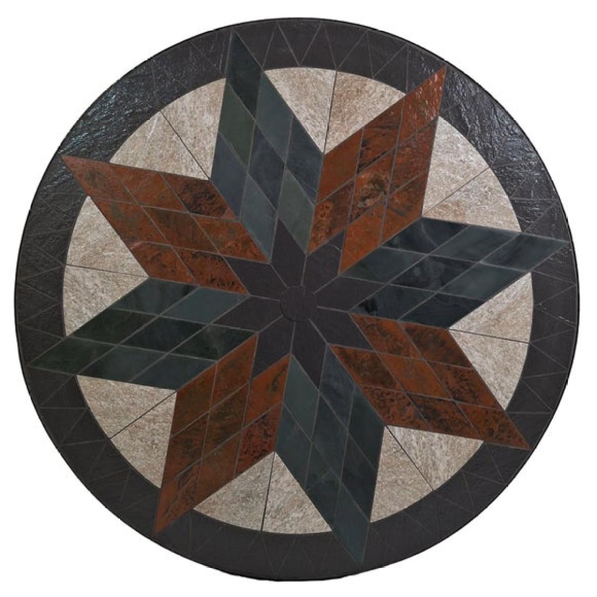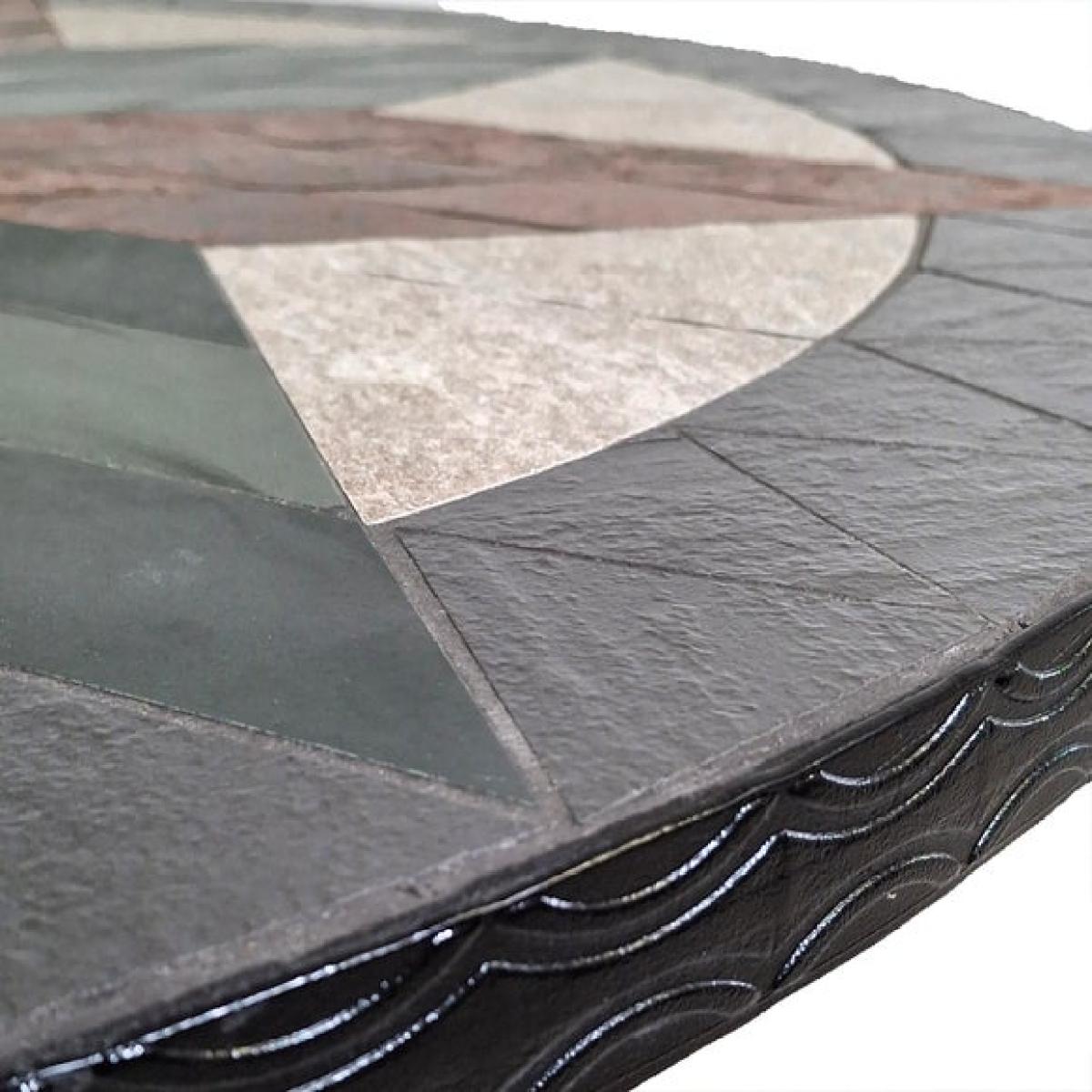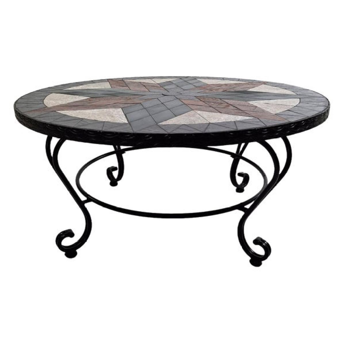 * Seats four people * 91cm diameter * Stone and ceramic tiled top * Sturdy steel frame * Plush cushioned chairs * Stackable for easy storage The Exclusive Garden Memphis Round Coffee Table and four Westfield Lounge Chairs make a striking and comfortable set for relaxed outdoor living. The table’s mosaic top, made from hand-laid natural stone and ceramic tiles, features a compass-inspired design with a gently textured finish. A black embossed metal edge adds a decorative touch, while the 91cm surface offers ample space for drinks and snacks. The chairs stack neatly for easy storage and come with deep, plush cushions for lasting comfort. Perfect for patios, decking, or garden corners. A stylish and sociable spot for gatherings of up to four.