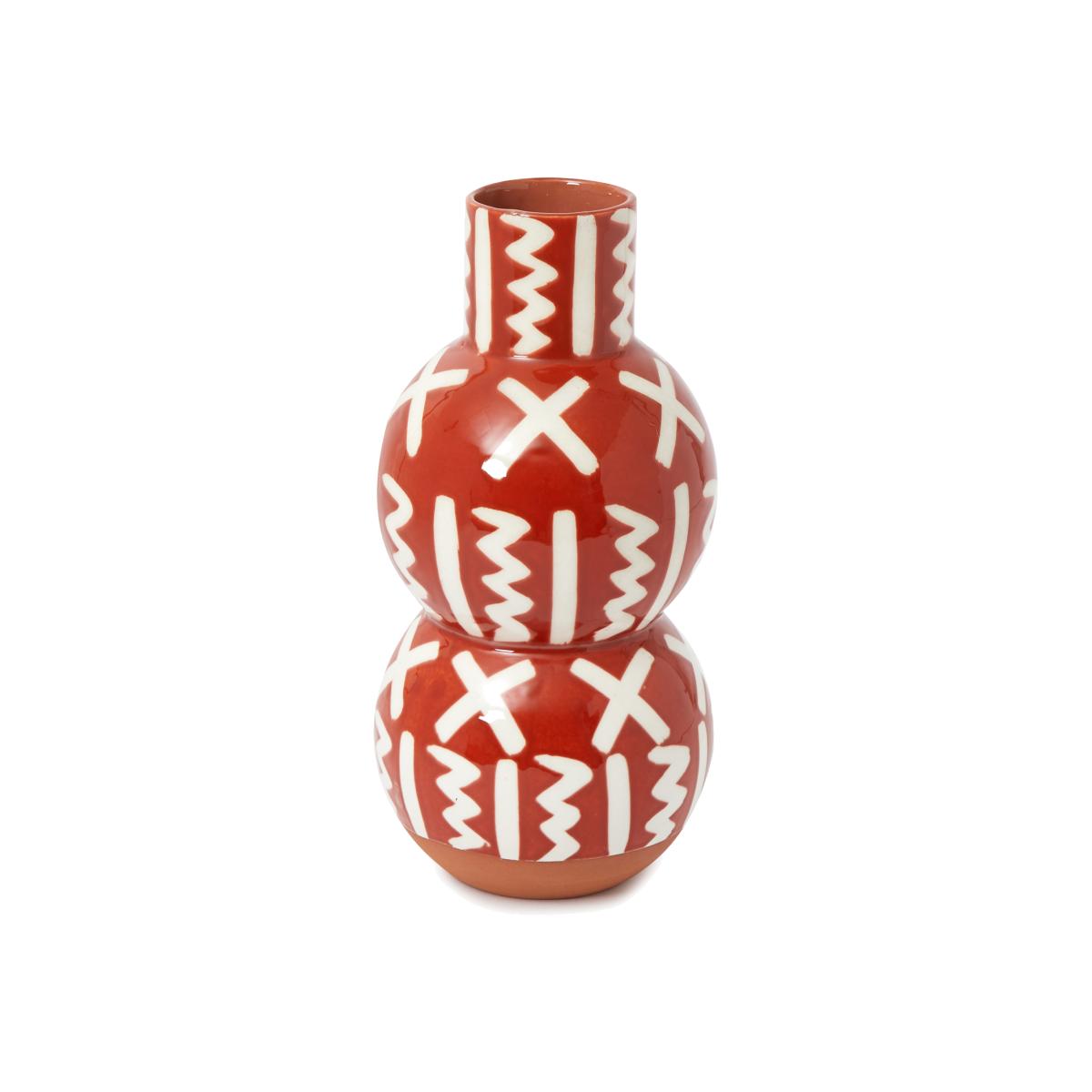 Designed exclusively for The Conran Shop, this Jouj Vase from Bouchra Boudoua is handcrafted in Morocco, reinterpreting the centuries-old craft with a modern sensibility. Crafted from terracotta and finished in a handpainted glaze design, the piece is largely influenced by Boudoua's daily life in Morocco and travels around the region. After studying Spatial Design at Central Saint Martins, Moroccan designer Bouchra Boudoua returned to Marrakech to set up a studio in collaboration with local potters, employing their many generations of knowledge in the field to create functional and decorative ceramic pieces for the home. Connecting to the roots of ceramics in Moroccan culture, Boudoua's work strives to find a balance between the worlds of craft and design, whilst maintaining a characterfully naïve aesthetic.