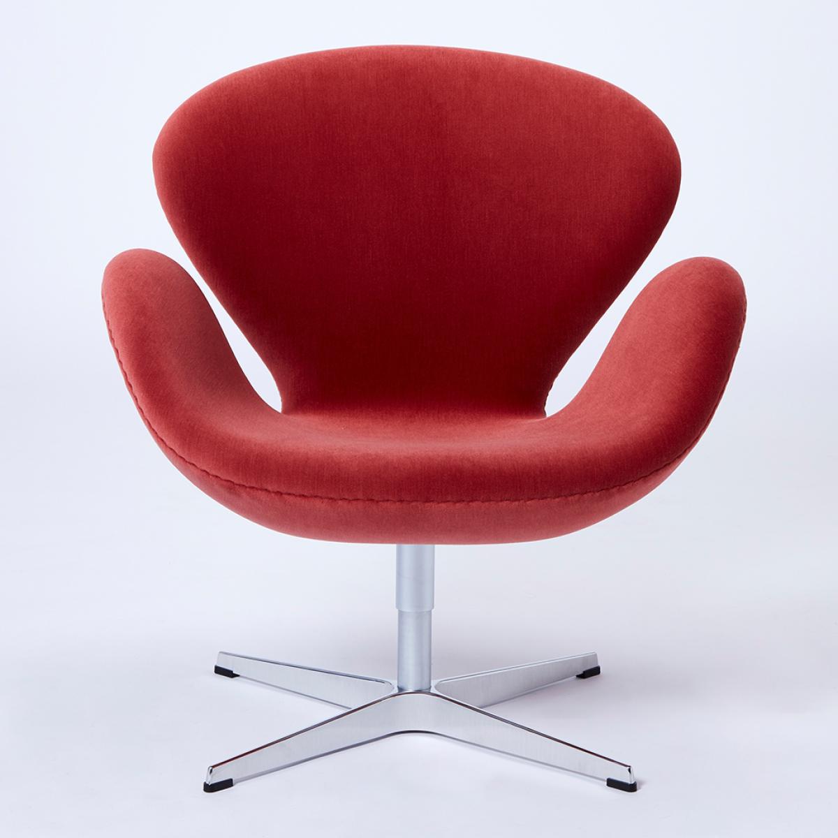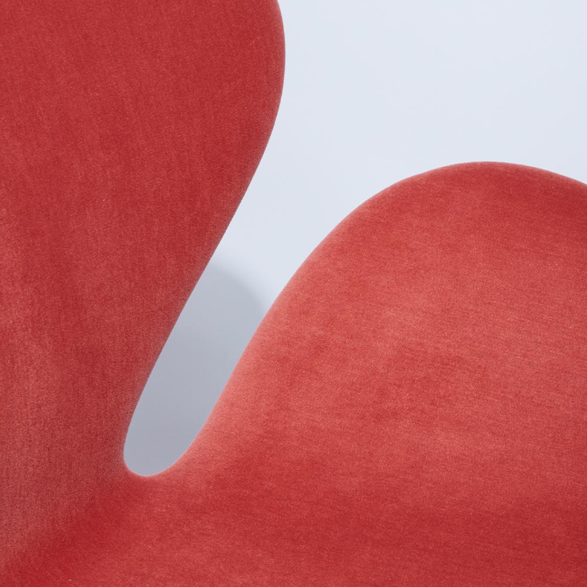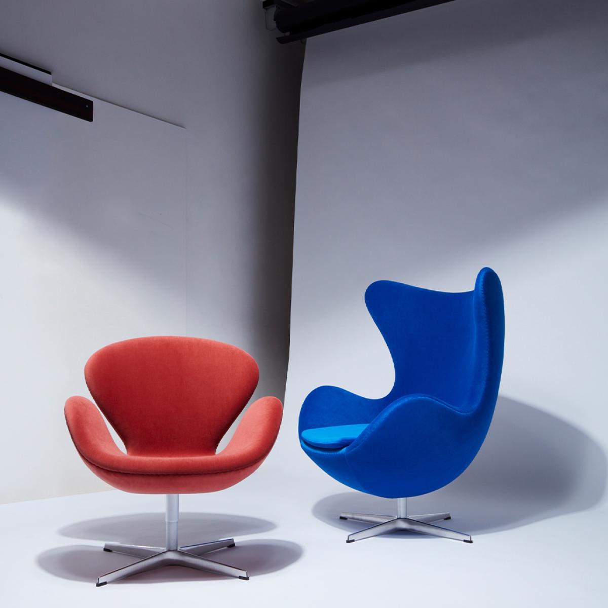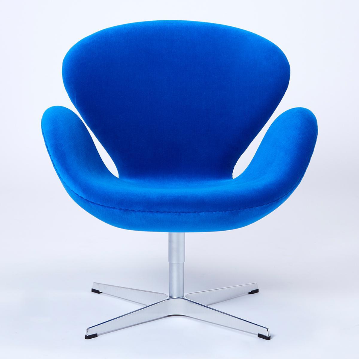 Arne Jacobsen's distinguished Swan Chair is a hero of mid-century design. It is exclusively available at The Conran Shop in Kvadrat's blue Gentle 2 upholstery, manufactured by Fritz Hansen. The Swan was crafted using new techniques for its time, with Jacobsen being the first to utilise a strong foam inner shell underneath the chair's upholstery. Using a unique process, Jacobsen tested and prototyped the shape and form of the chair using clay in his home studio. The chair sits atop a polished aluminium base and its intricate configuration requires bespoke upholstery. This edition boasts Febrik's new wool blend for Kvadrat, specially sourced from The Netherlands and marks the first time that the chair is available to purchase in a velvet finish. Conceptualised in 1958 for Jacobsen's architectural endeavour, the Royal Hotel Copenhagen, the chair's curves offer a sculptural contrast to the building's straight edges and vertical lines. Although renovated in 2018, Jacobsen's legacy is still prevalent in every space and room 606 remains unchanged, true to his original commission.