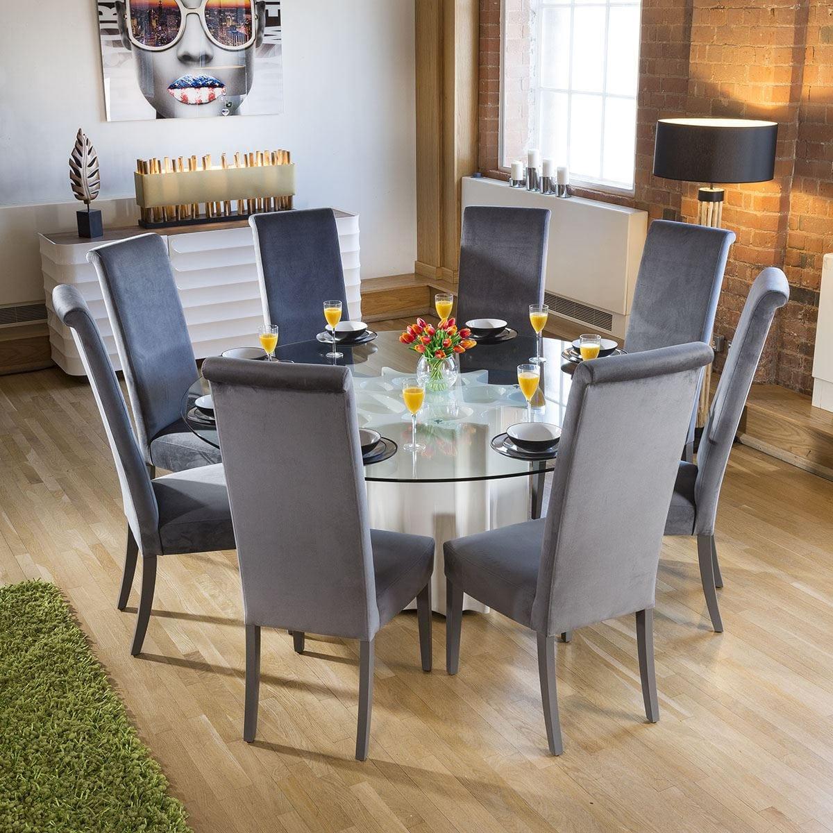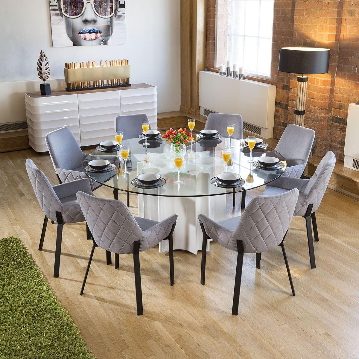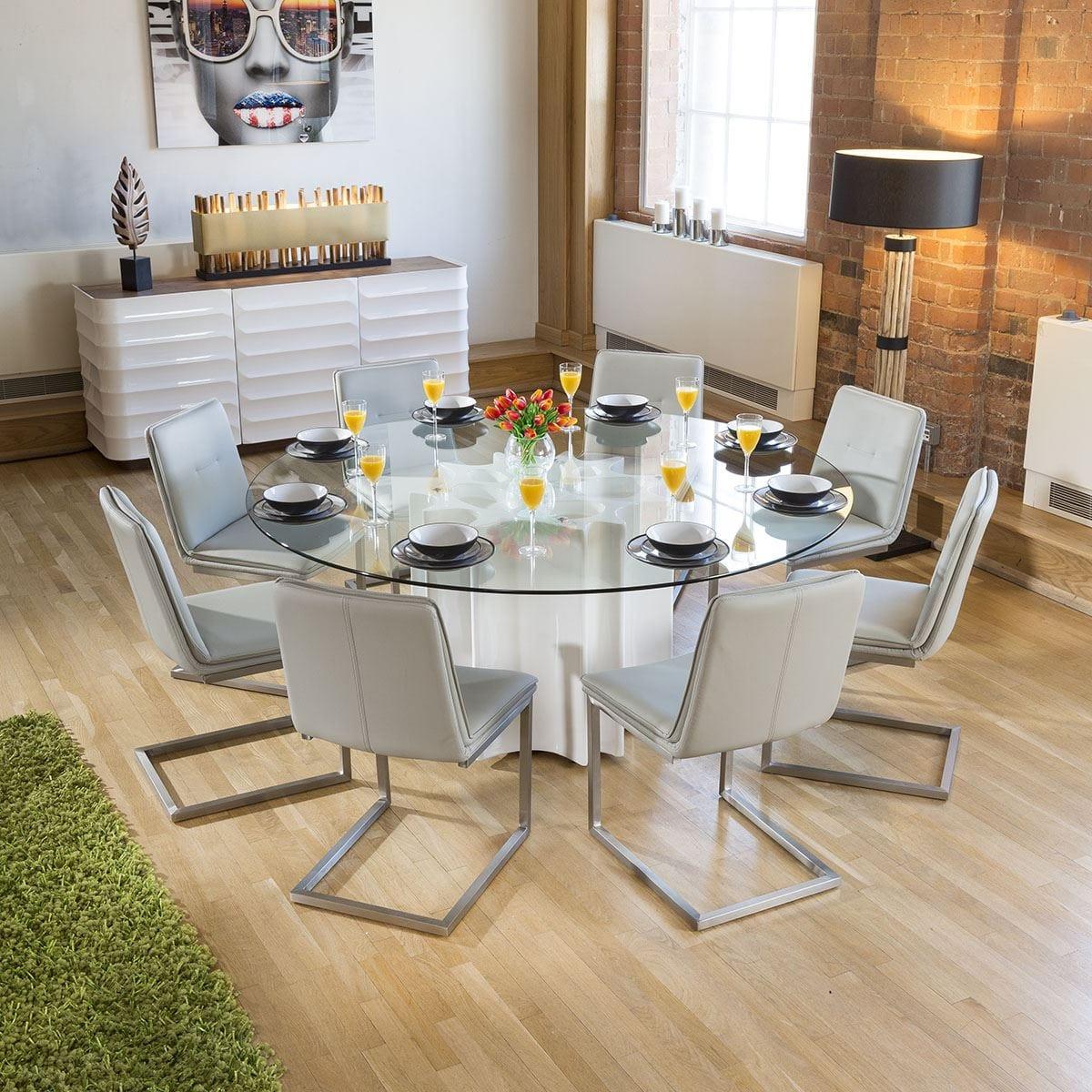 Quatropi's Brand New Stunning Modern 1.8 meter Dining Table. Amazing sculptured piece finished in glossy white, Topped with a 1.8m Clear Glass Giving This Table a Minimalistic Look As Well As a Sculptural Feel From The Middle Stem. Wonderful stunning build quality. W180cm D180cm H75cm Modern Design Premium Quality Furniture