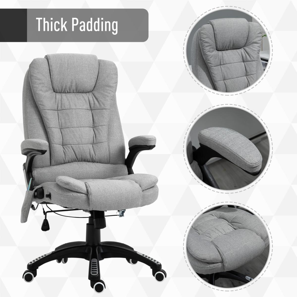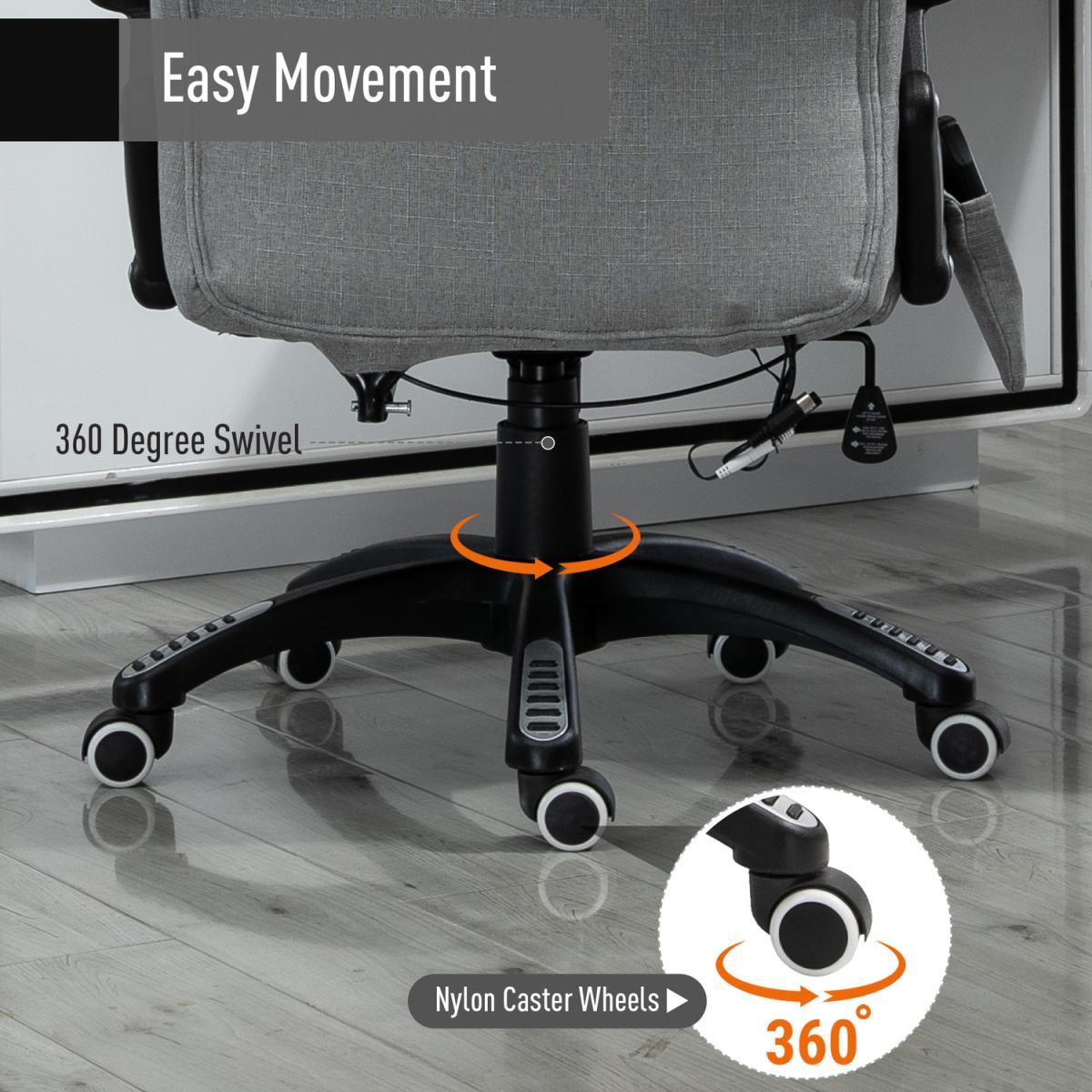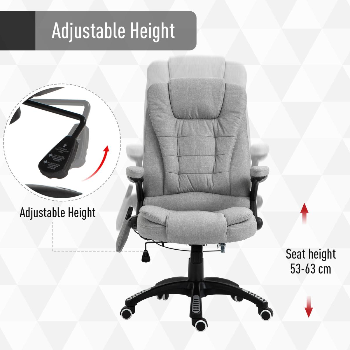 Let any aches or pains melt away as you sink into this luxurious massage chair from Vinsetto. 6 massage points and heating function, extra thick padding and linen upholstery, making it the perfect spot to immerse yourself for a few hours. It's ergonomic too. Adjustable in height, reclining up to 130 degrees and featuring a high back and arms, this chair will aid in ensuring your posture is correctly supported as it relaxes you. A 360-degree swivel base and 5 sturdy castor wheels, allows you to move around the room freely. A fantastic combination of superior comfort and functionality.