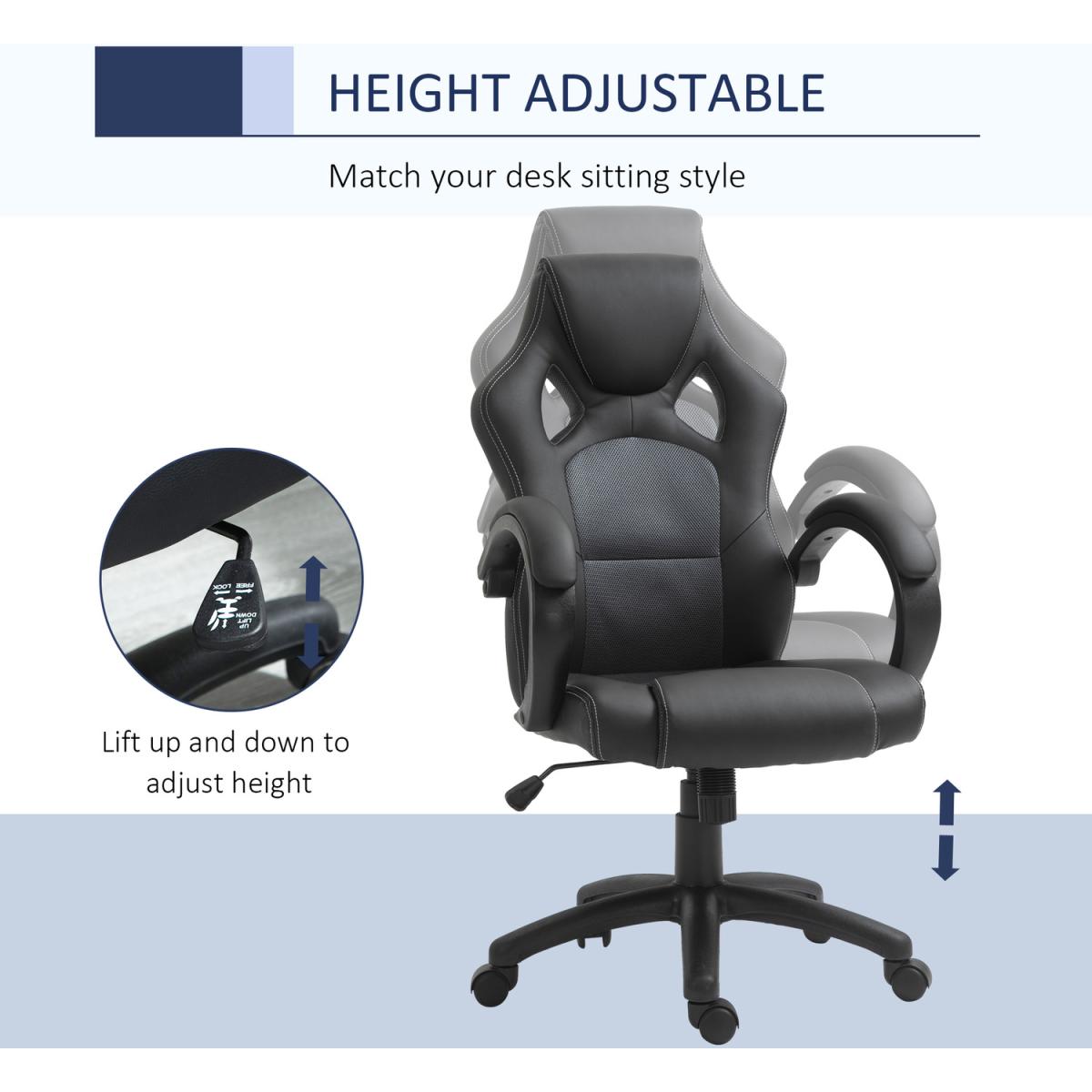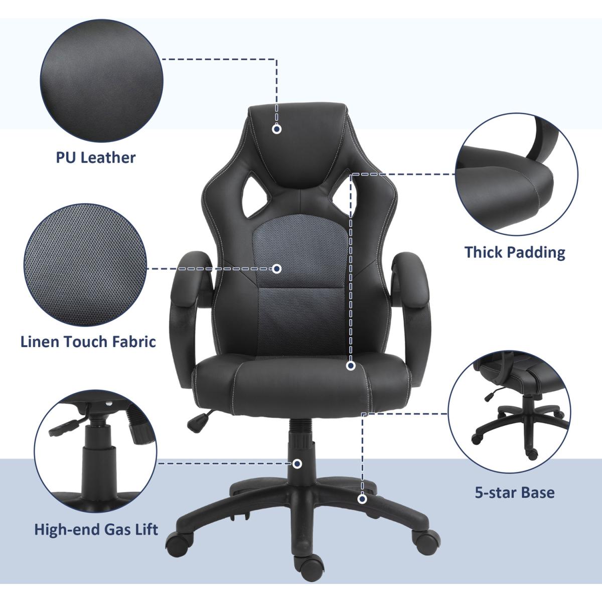 Executive Swivel Racing Gaming Office Chair Computer Desk Chair - Black, Grey / pu Sponge Nylon Steel