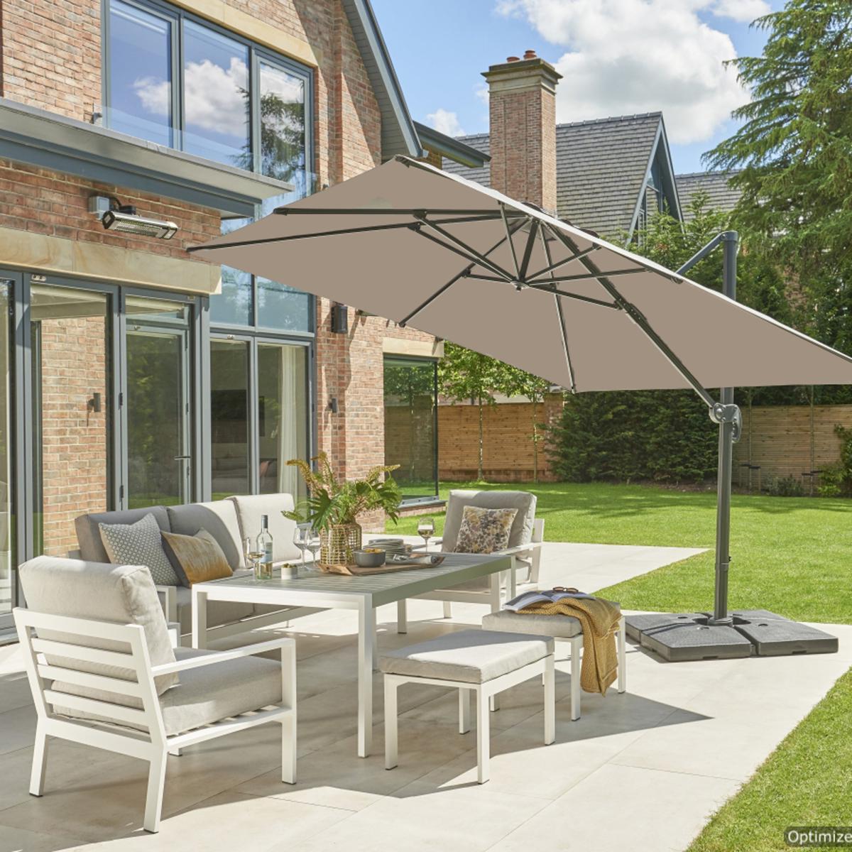 Perfect for keeping you shaded from the Summer sun, this Executive Parasol is simple yet stylish. With full rotation and an easy action handle tilt system, this parasol is easy to use. This cantilever parasol boasts a luxury polyester canopy, ideal for adding a sophisticated look to your garden. Please Note: Parasol Bases and Covers are not included and are sold separately.