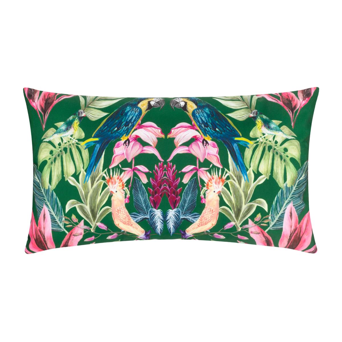I love how this cushion adds a vibrant, exotic touch to outdoor and indoor spaces. Its dark green base makes it versatile enough to pair with neutral palettes or richer tones, while the lively tropical print injects colour and personality into any setting. It works especially well in garden furniture, patios, or even sunrooms, where its bold design can be fully appreciated. For styling tips, pair it with wicker or rattan furniture for a relaxed, natural vibe, or combine it with other patterned cushions to create an eclectic look. Its practical design also means it can withstand outdoor conditions, making it both a stylish and functional choice.