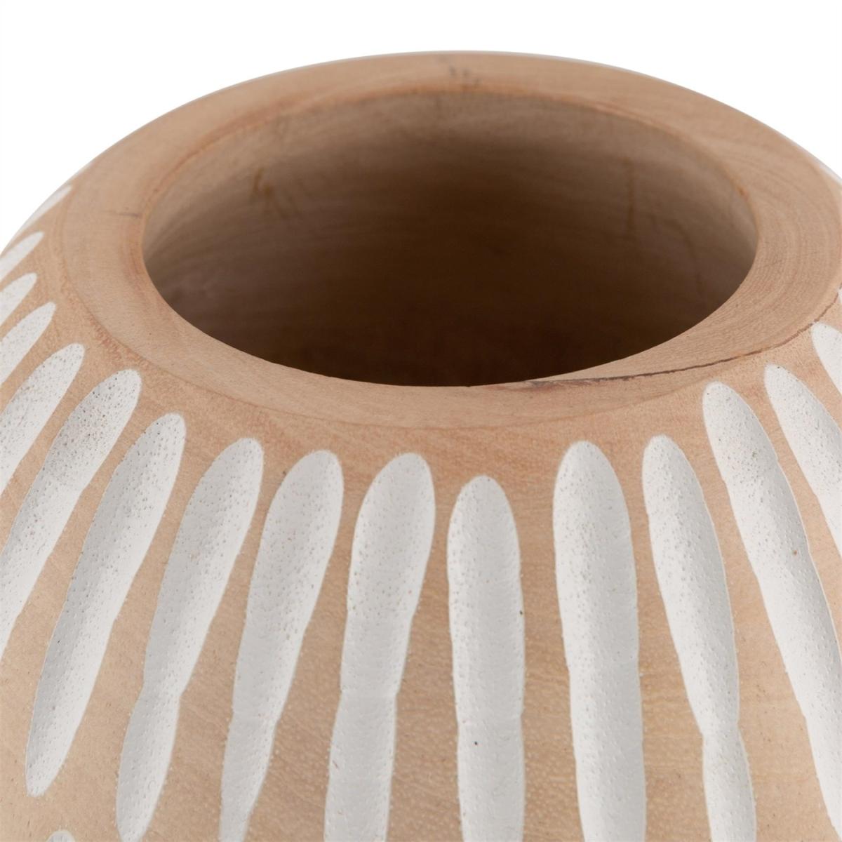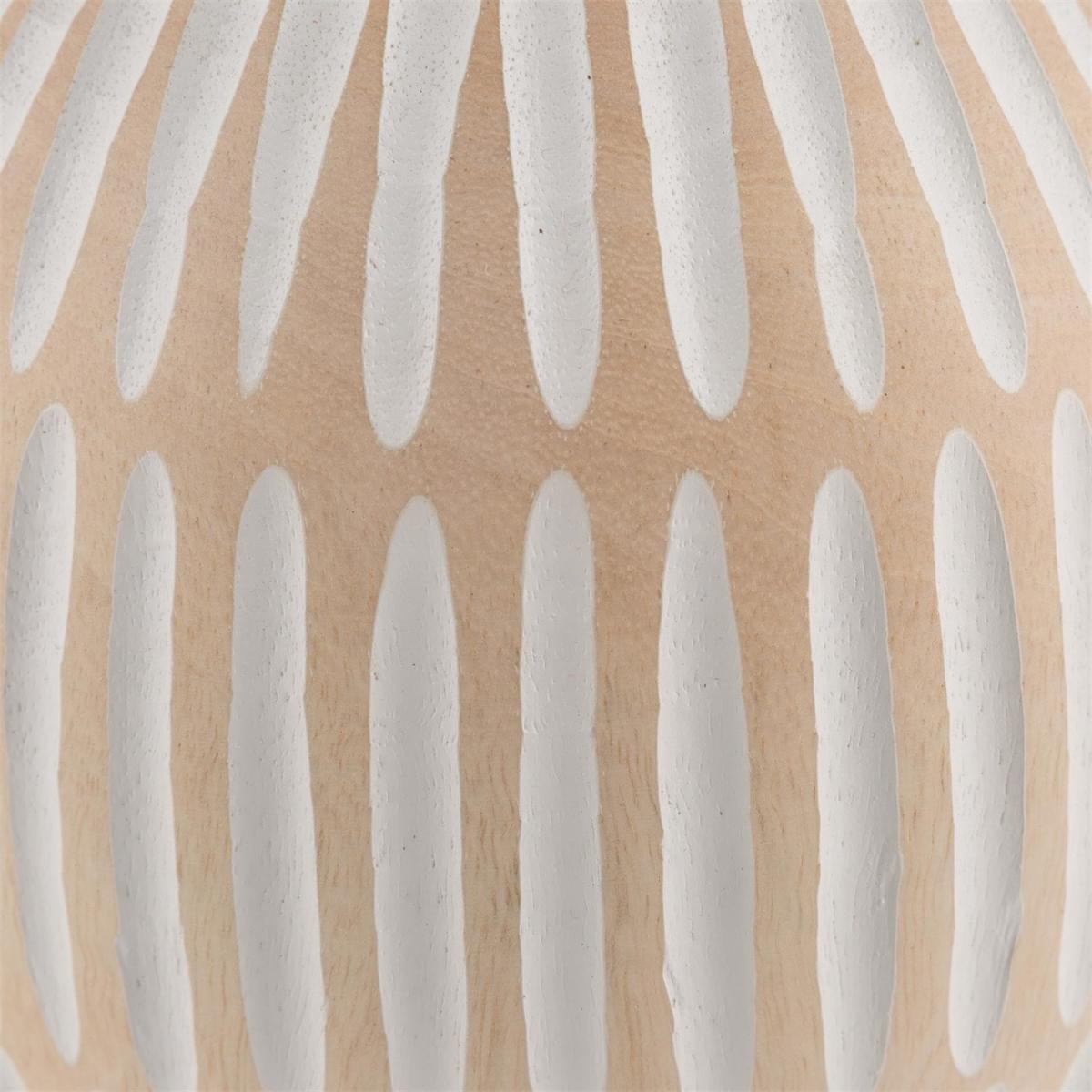 I love the explorer carved stripe in this vase for its subtle texture and neutral tone, making it adaptable for a range of interior styles. It works particularly well in contemporary, Scandinavian, or boho spaces where natural materials and understated patterns are appreciated. To style it effectively, consider pairing with single stems like eucalyptus or dried grasses for a simple, elegant look. It’s also worth experimenting with placing it at different heights-on a shelf, side table, or mantel-to add visual interest without overwhelming the space. Its understated design makes it versatile, so don’t be afraid to mix it with other textures or colours for a curated, layered effect.