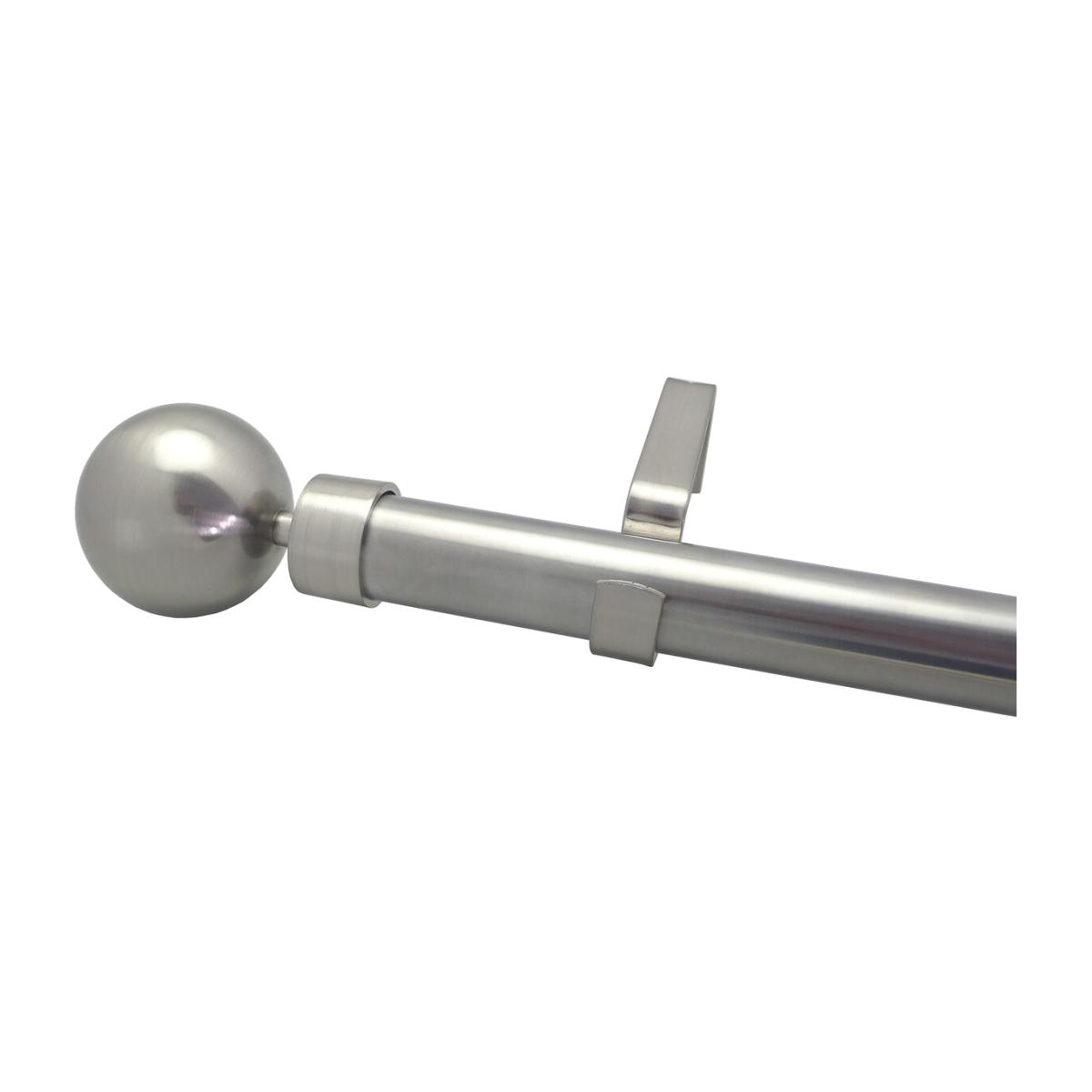 This brushed nickel curtain rod kit has been designed as an accessible and on-trend solution.. It will fit perfectly into interiors combining modernity and cosy textures.. Product Details • Tube and supports in steel • End pieces in steel and aluminium • Brushed nickel finish • Kit includes: bar, 2 ball-shaped end caps, 2 supports, screws. Dimensions • Minimum length 120cm • Maximum length 210cm • Diameter: 19-16mm