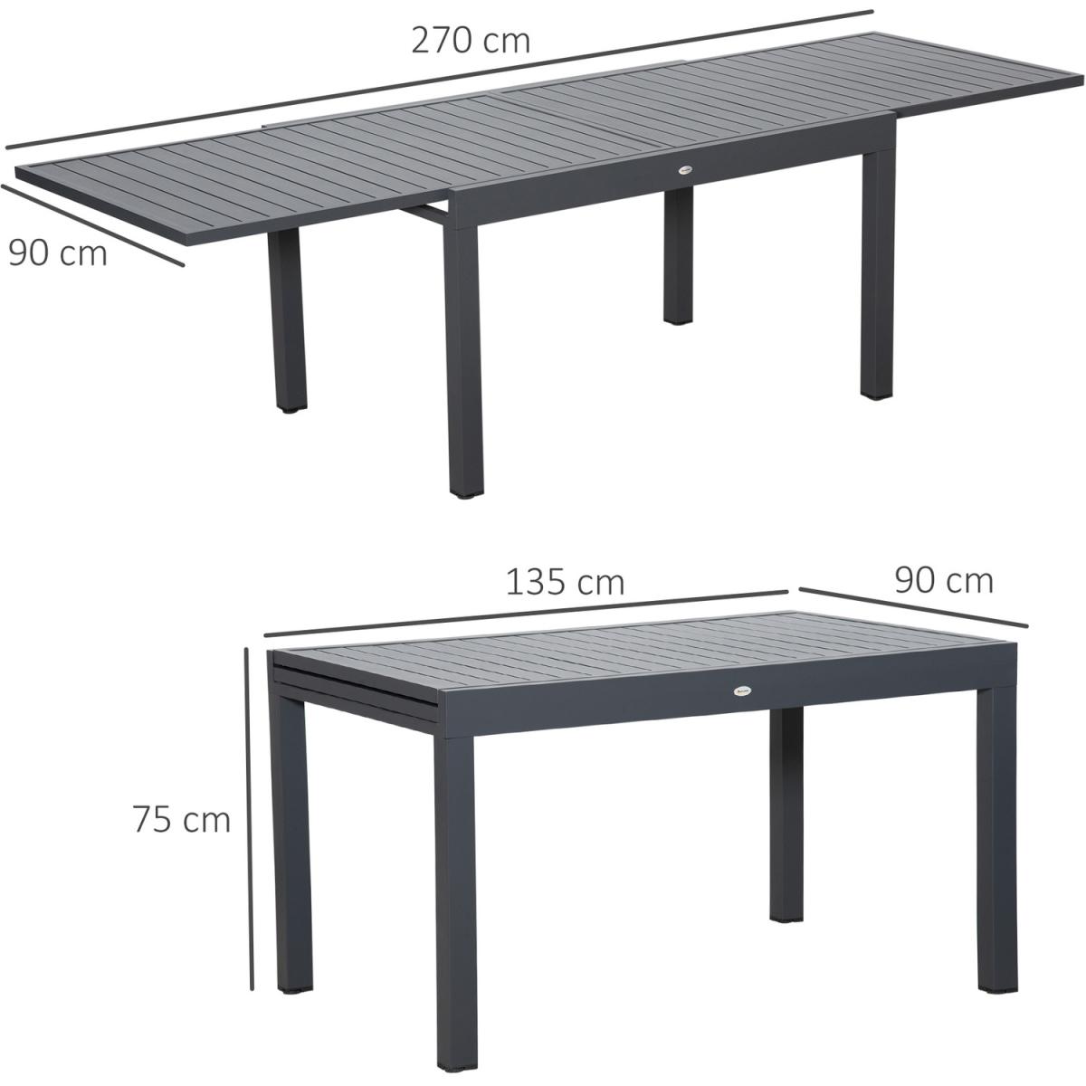 Pick a stylish addition for dining, afternoon tea and parties on patios, decks and more, with this garden dining table from Outsunny. The powder coated aluminium frame is sturdy and durable. The table top extends between 135cm and 270cm - seating between eight and people: great for when friends and family come over!