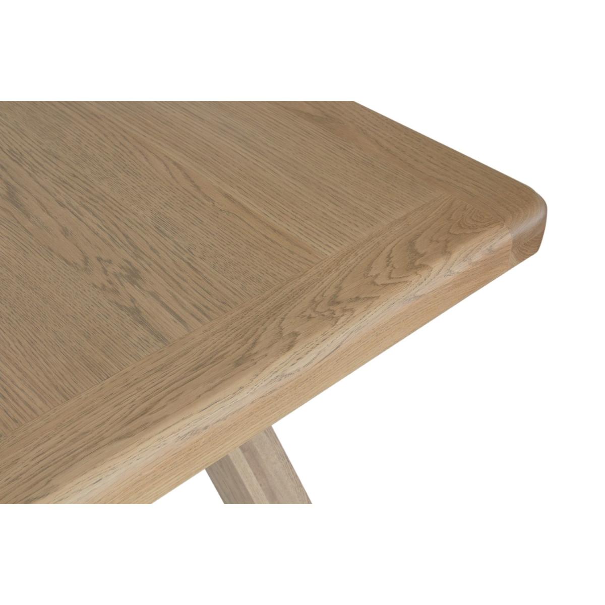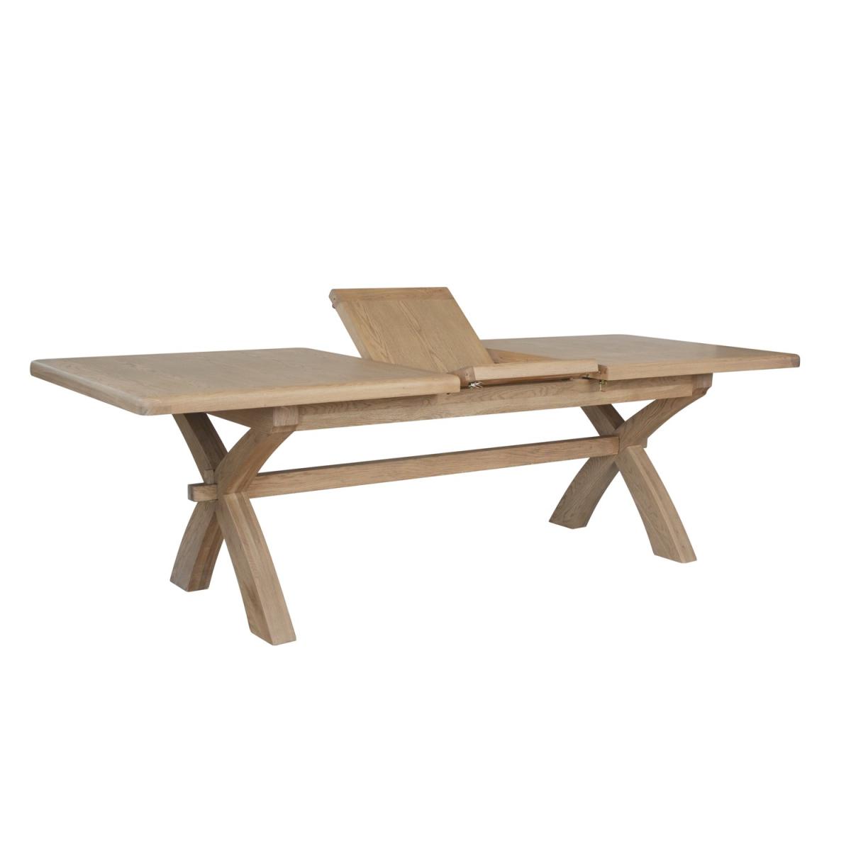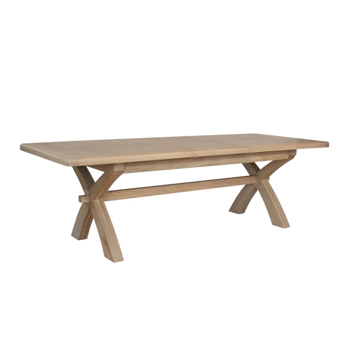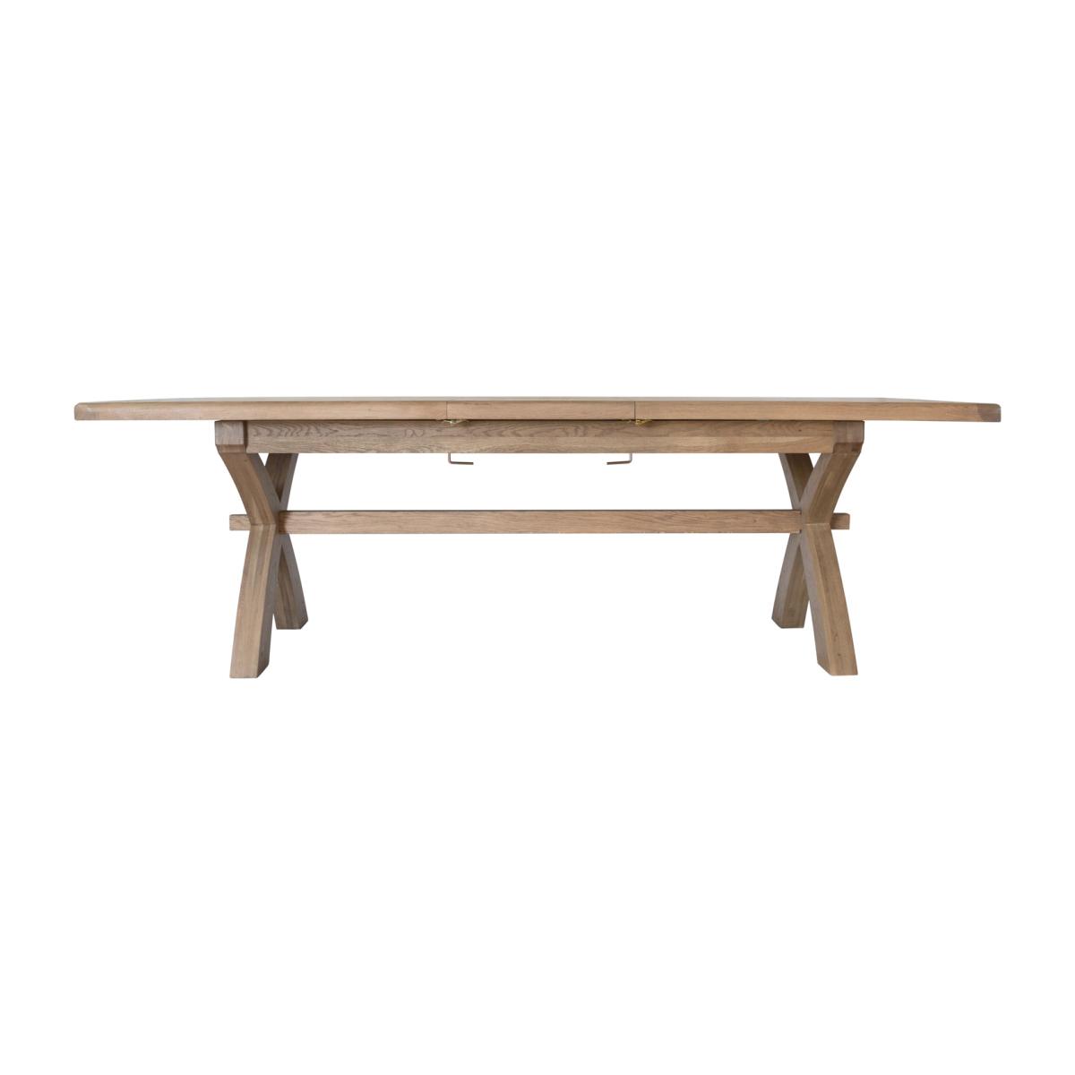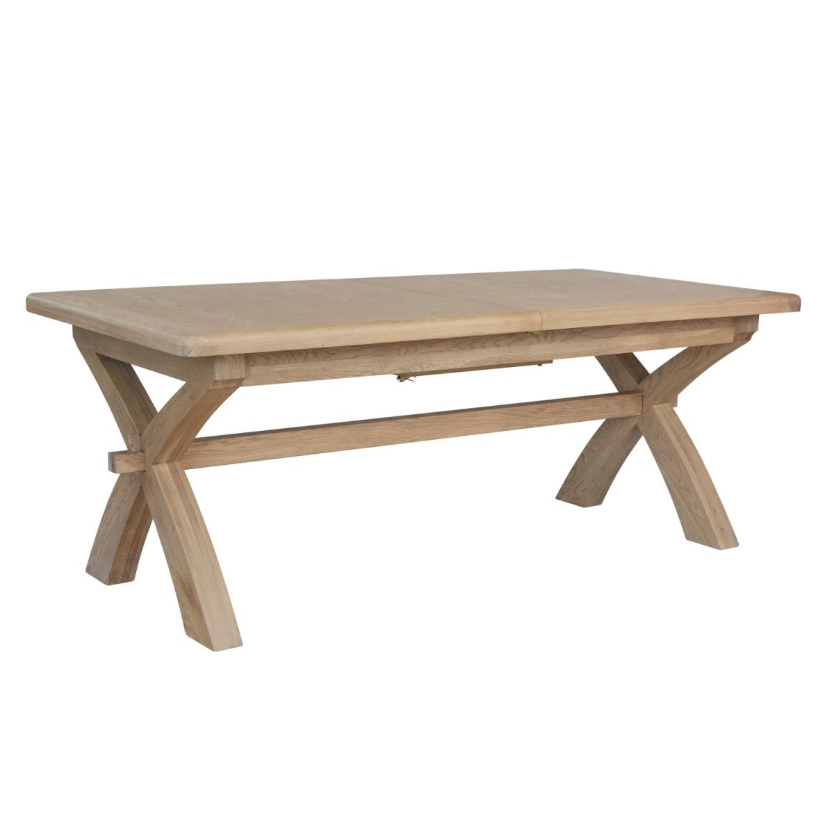 The Wickerman oak dining table features a cross leg design and smooth rounded corners. It's practical as well as stylish, with an aluminium ball bearing runner for a smooth extending action, to create extra dining space. It's a stunning modern twist on a traditional design that's perfect for any interior.