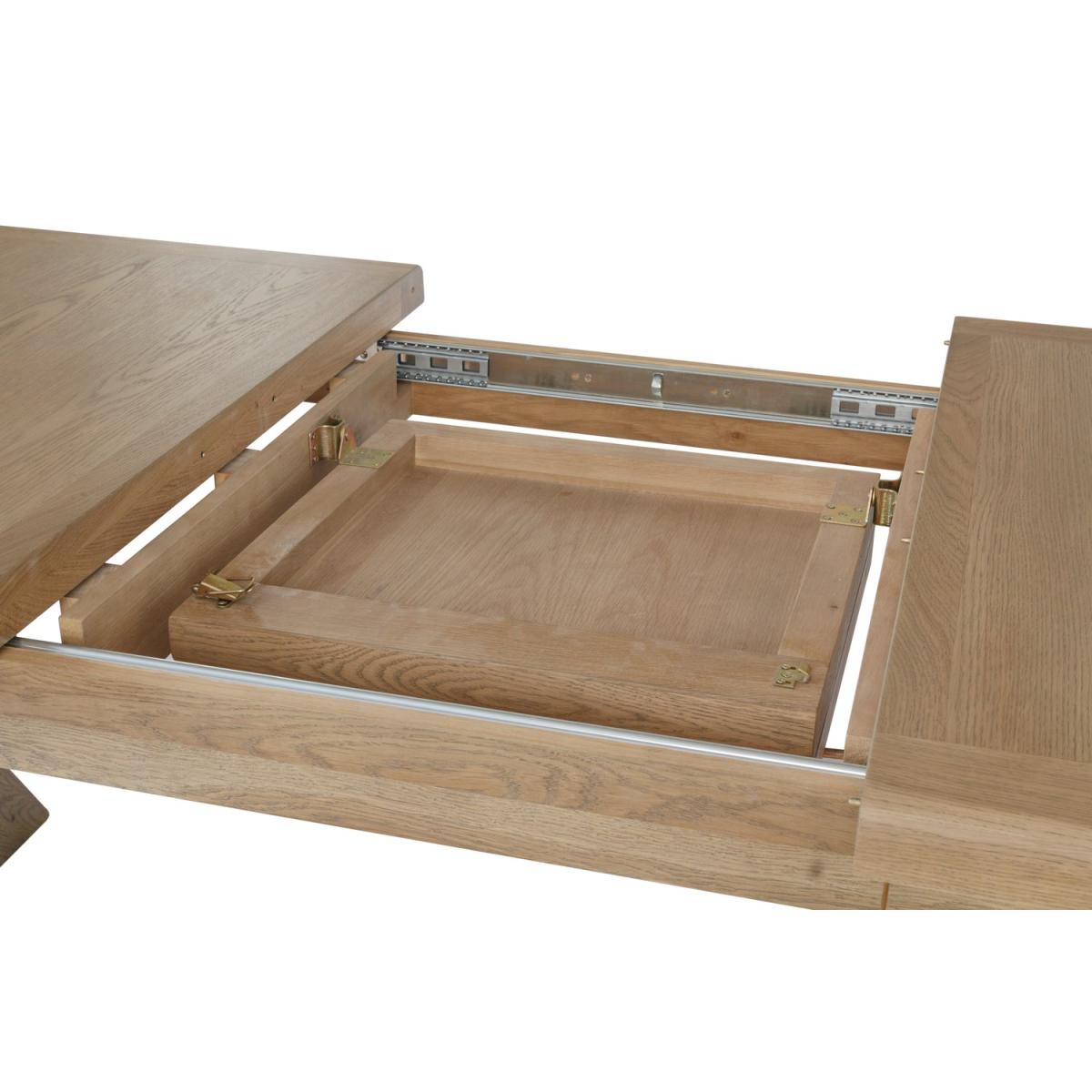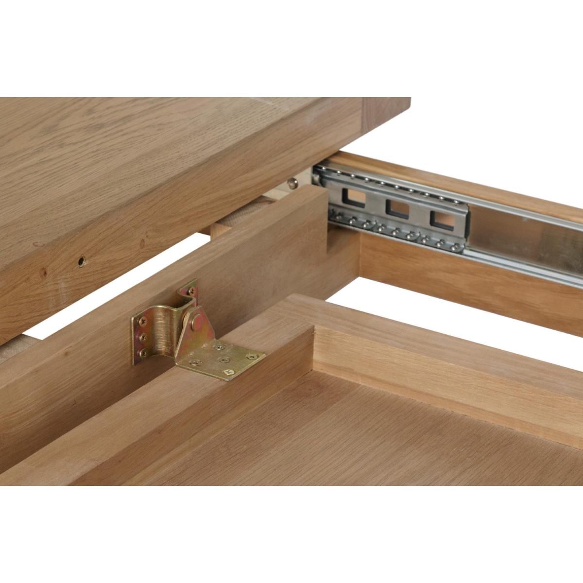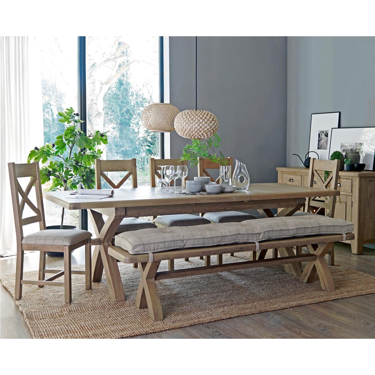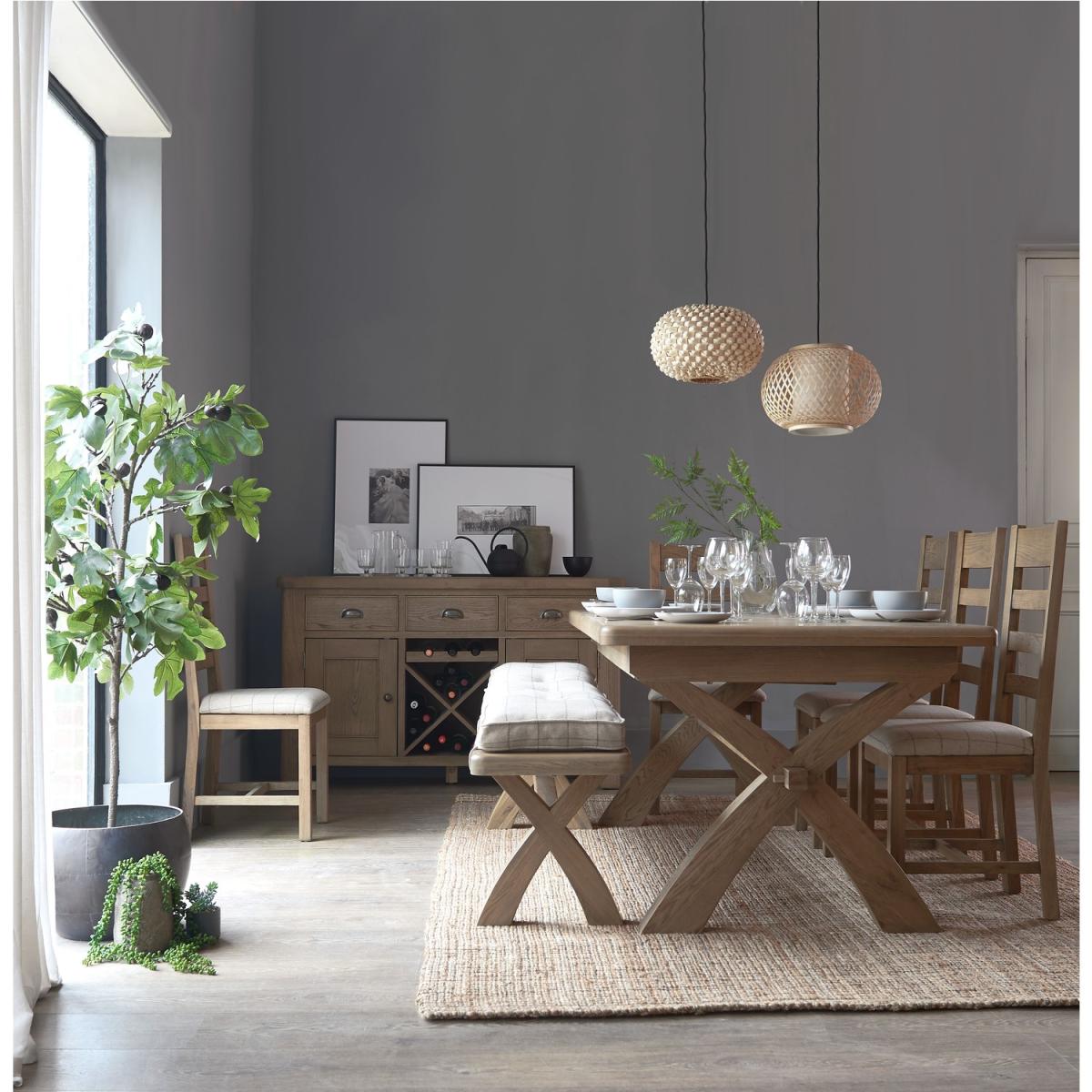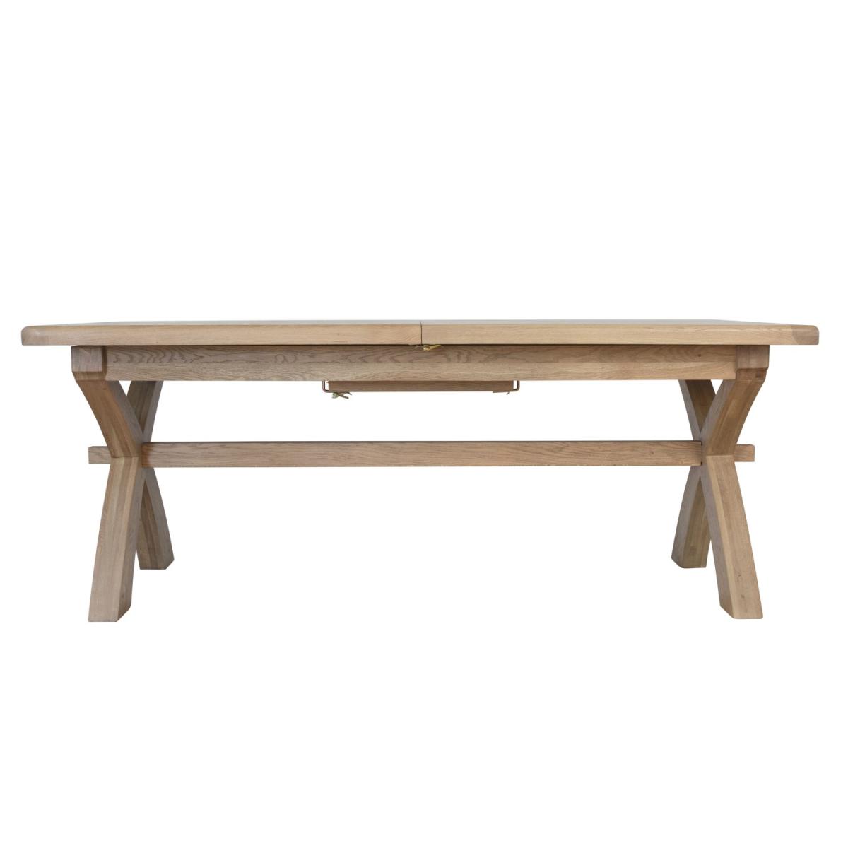 The Wickerman oak dining table features a cross leg design and smooth rounded corners. It's practical as well as stylish, with an aluminium ball bearing runner for a smooth extending action, to create extra dining space. It's a stunning modern twist on a traditional design that's perfect for any interior.